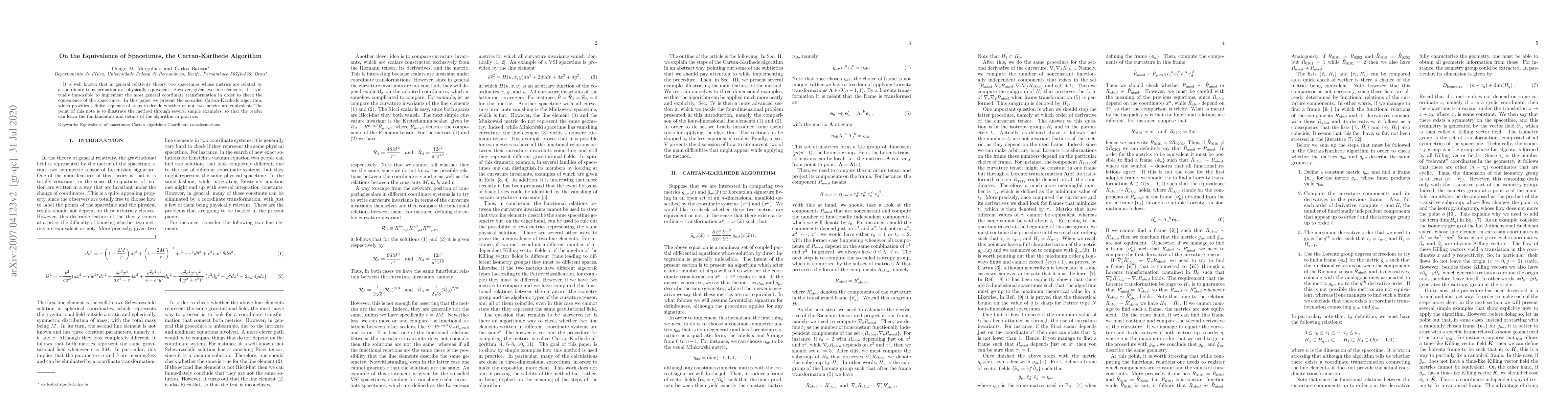 This paper introduces the Cartan-Karlhede algorithm, a finite sequence of steps to determine if two spacetime metrics are physically equivalent, addressing the challenge of implementing general coordinate transformations. It demonstrates the method through practical examples to elucidate its fundamentals and application.