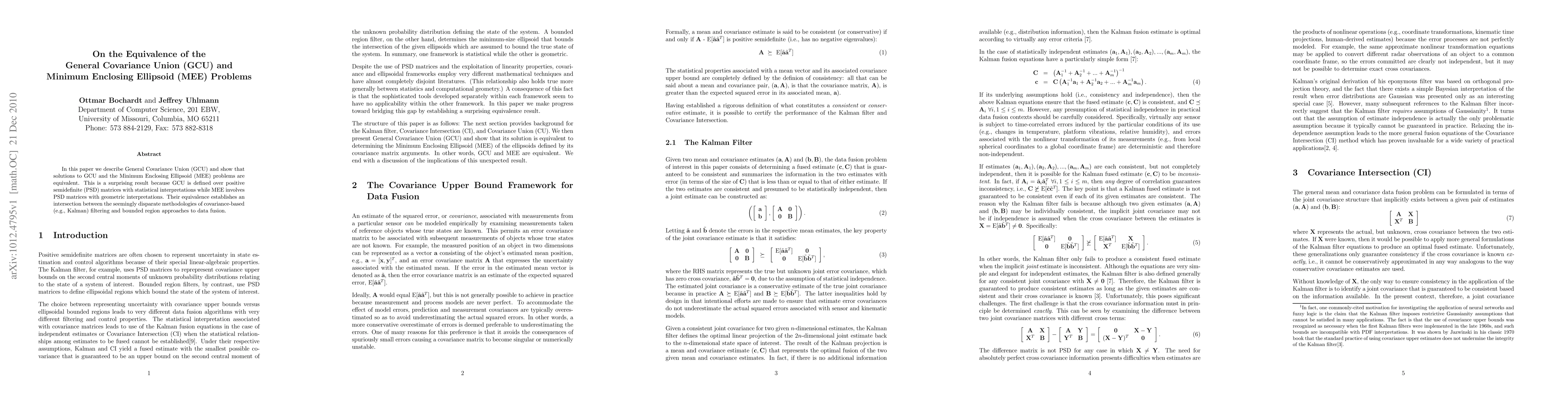The paper shows that solutions to General Covariance Union (GCU) and Minimum Enclosing Ellipsoid (MEE) problems are equivalent, bridging two disparate methodologies in data fusion: covariance-based filtering and bounded region approaches.