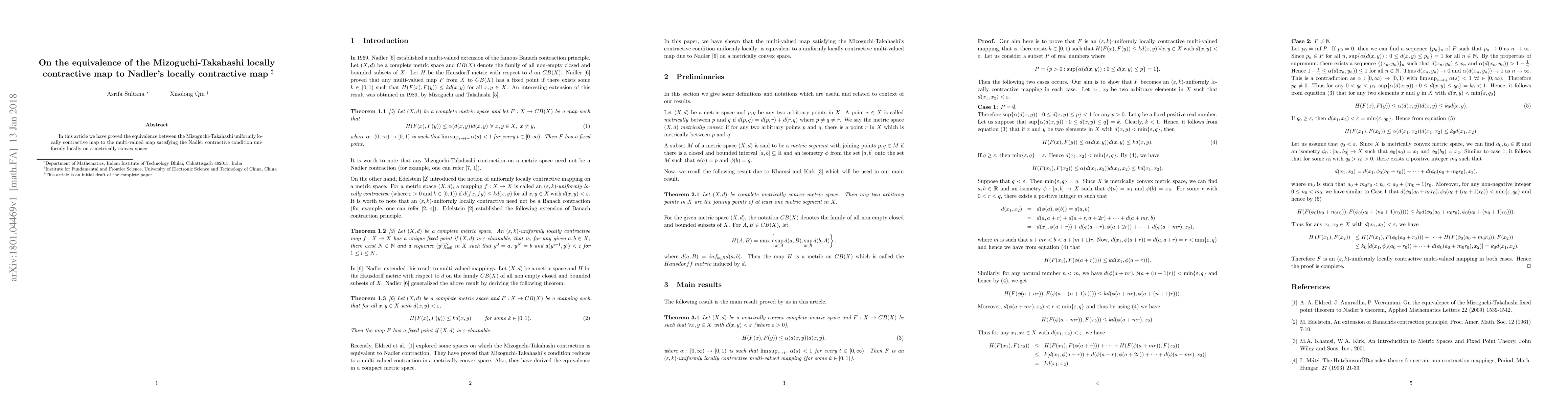 In this article, we have proved the equivalence between the Mizoguchi-Takahashi uniformly~locally~contractive map to the multi-valued map satisfying the Nadler contractive condition uniformly~locally~on a metrically convex space.