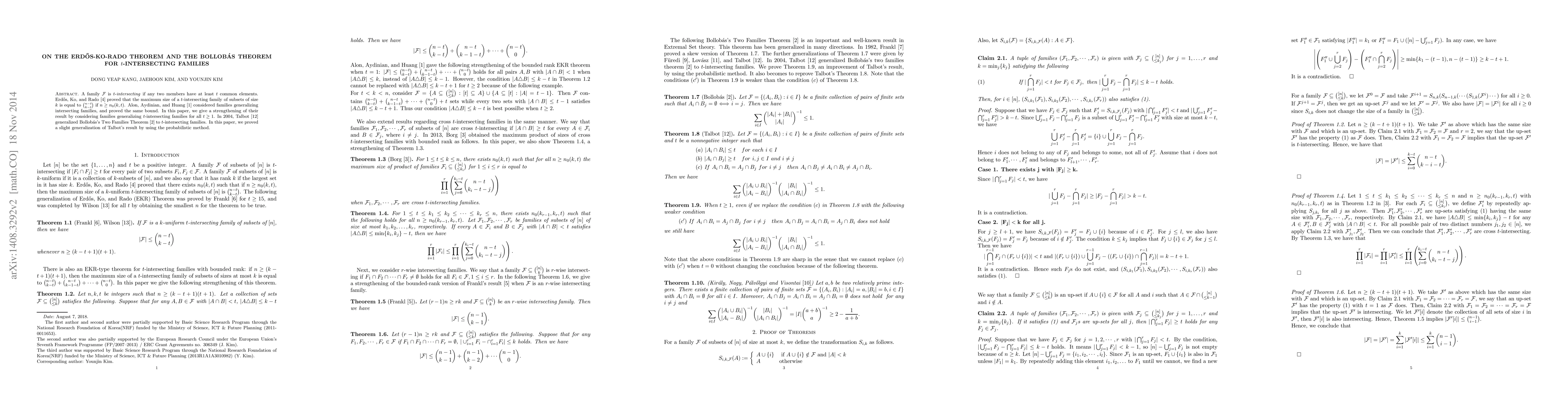 A family $\mathcal{F}$ is $t$-$\it{intersecting}$ if any two members have at least $t$ common elements. Erd\H os, Ko, and Rado proved that the maximum size of a $t$-intersecting family of subsets of size $k$ is equal to $ {{n-t} \choose {k-t}}$ if $n\geq n_0(k,t)$. Alon, Aydinian, and Huang considered families generalizing intersecting families, and proved the same bound. In this paper, we give a strengthening of their result by considering families generalizing $t$-intersecting families for all $t \geq 1$. In 2004, Talbot generalized Bollob\'{a}s's Two Families Theorem to $t$-intersecting families. In this paper, we proved a slight generalization of Talbot's result by using the probabilistic method.