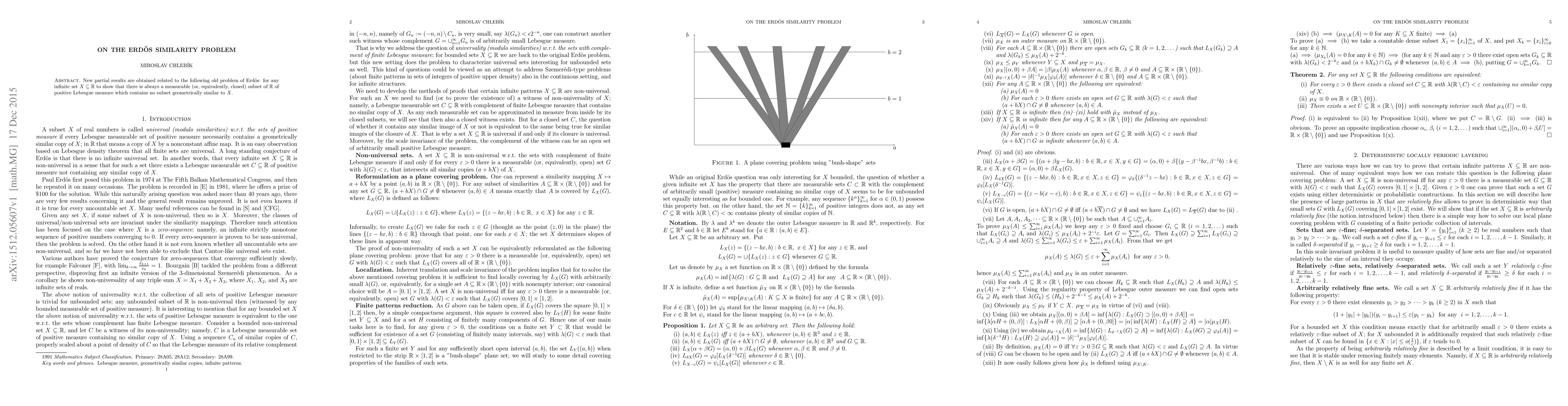 New partial results are obtained related to the following old problem of Erd\"os: for any infinite set $X$ of real numbers to show that there is always a measurable (or, equivalently, closed) subset of reals of positive Lebesgue measure which contains no subset geometrically similar to $X$.