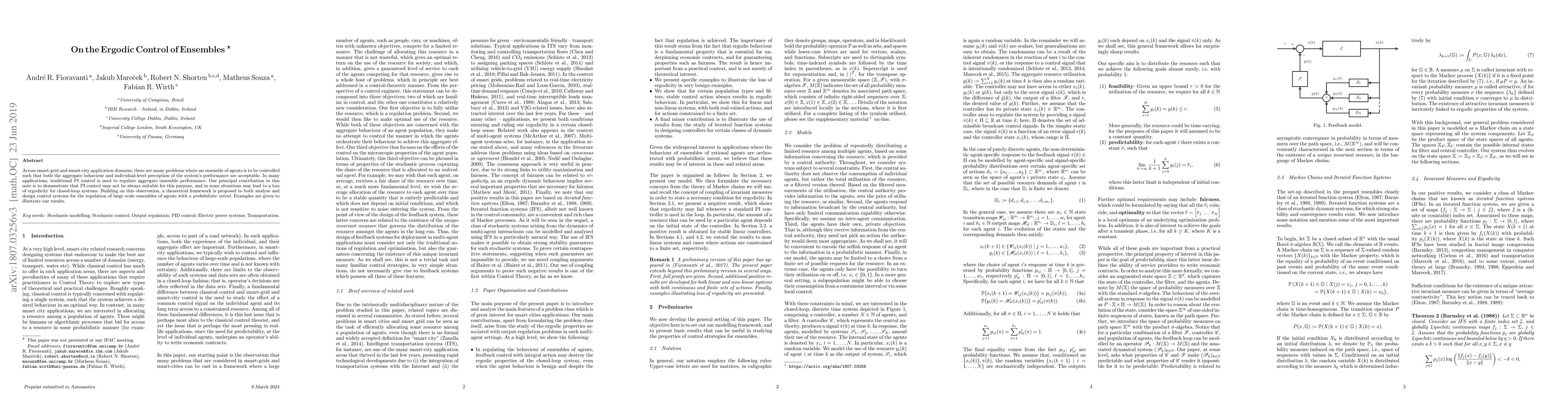 Across smart-grid and smart-city application domains, there are many problems where an ensemble of agents is to be controlled such that both the aggregate behaviour and individual-level perception of the system's performance are acceptable. In many applications, traditional PI control is used to regulate aggregate ensemble performance. Our principal contribution in this note is to demonstrate that PI control may not be always suitable for this purpose, and in some situations may lead to a loss of ergodicity for closed-loop systems. Building on this observation, a theoretical framework is proposed to both analyse and design control systems for the regulation of large scale ensembles of agents with a probabilistic intent. Examples are given to illustrate our results.