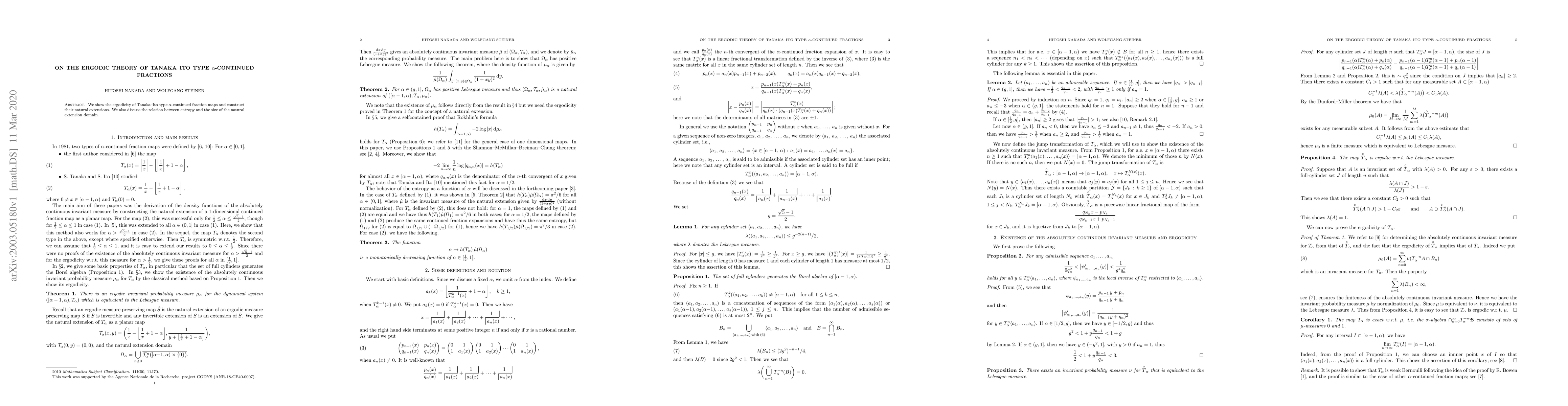 Researchers prove that Tanaka-Ito type alpha-continued fraction maps are ergodic and introduce a natural extension of these maps, exploring the relationship between entropy and map domain size.