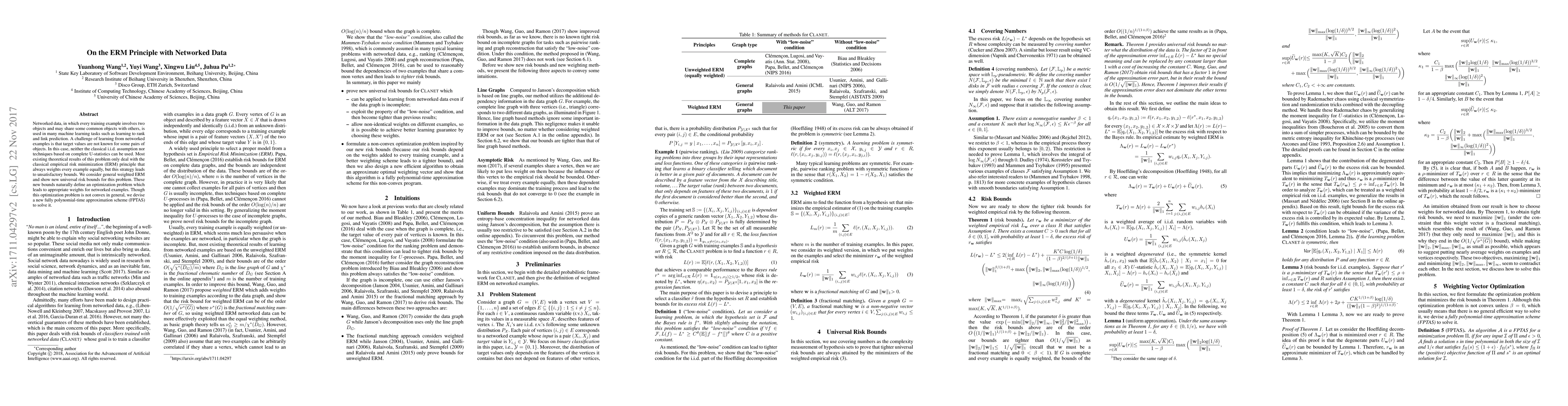 Researchers developed new universal risk bounds for learning from networked data, enabling more accurate machine learning models in tasks like ranking and link prediction. They also created a fully polynomial-time approximation scheme to optimize weights for these examples.
