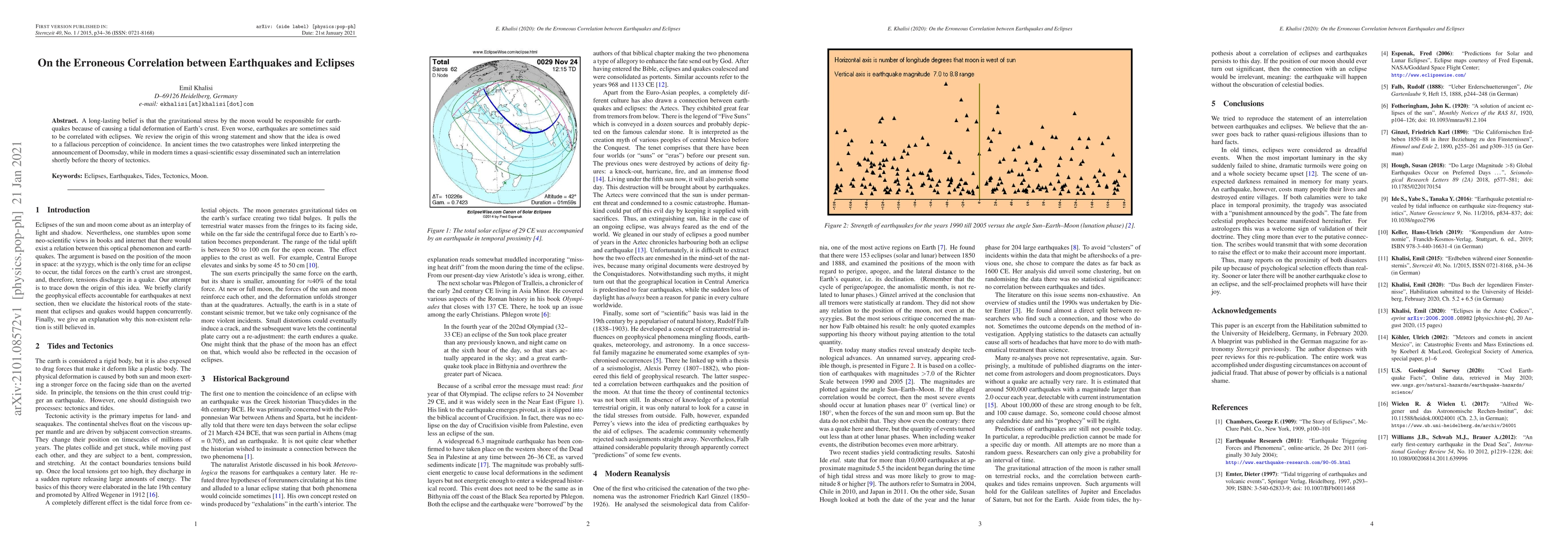 The paper provides a comprehensive review of historical claims linking earthquakes and eclipses, demonstrating their fallacious nature through geophysical explanations and statistical analysis.