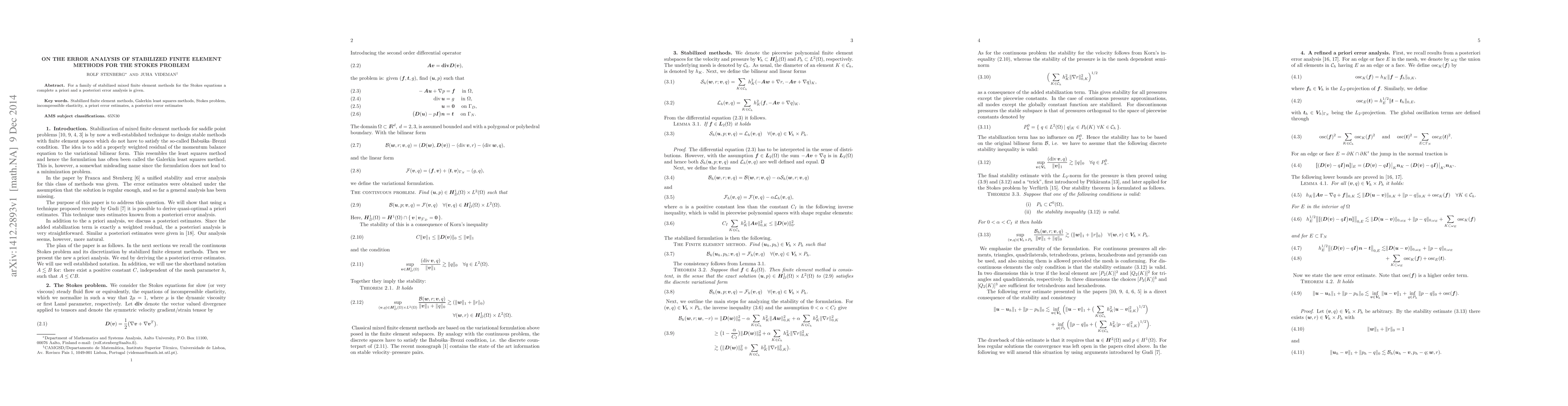Summary: This paper provides a comprehensive a priori and a posteriori error analysis for stabilized mixed finite element methods applied to the Stokes problem, ensuring accurate numerical solutions.