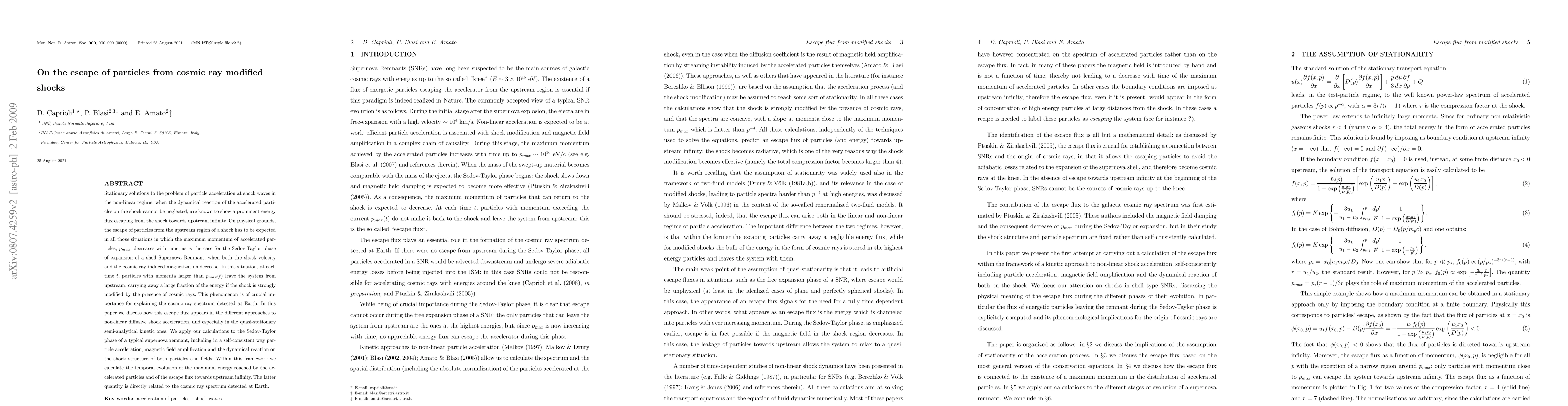 This paper explores particle escape from cosmic ray-modified shock waves, focusing on the non-linear regime where the accelerated particles' feedback on the shock is significant. It examines how particles with momenta exceeding the maximum achievable momentum leave the upstream region, carrying away a substantial energy fraction, which is crucial for understanding the cosmic ray spectrum observed on Earth.