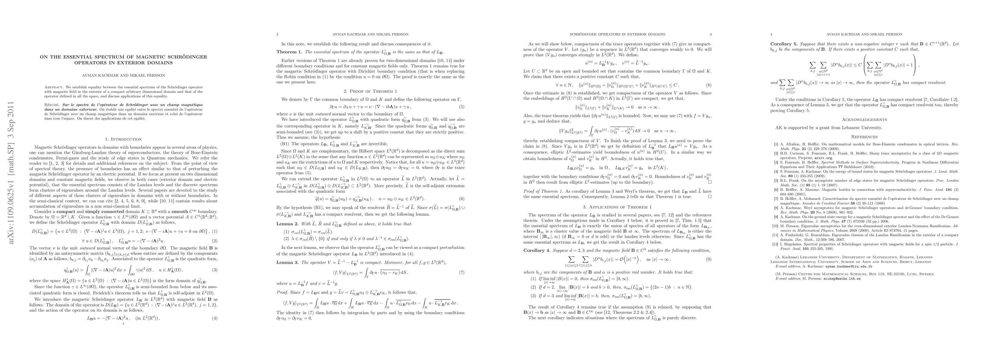 Researchers show that the essential spectrum of a magnetic Schrödinger operator in an exterior domain is equal to its spectrum when defined over all space, with implications for understanding quantum behavior in magnetic fields.