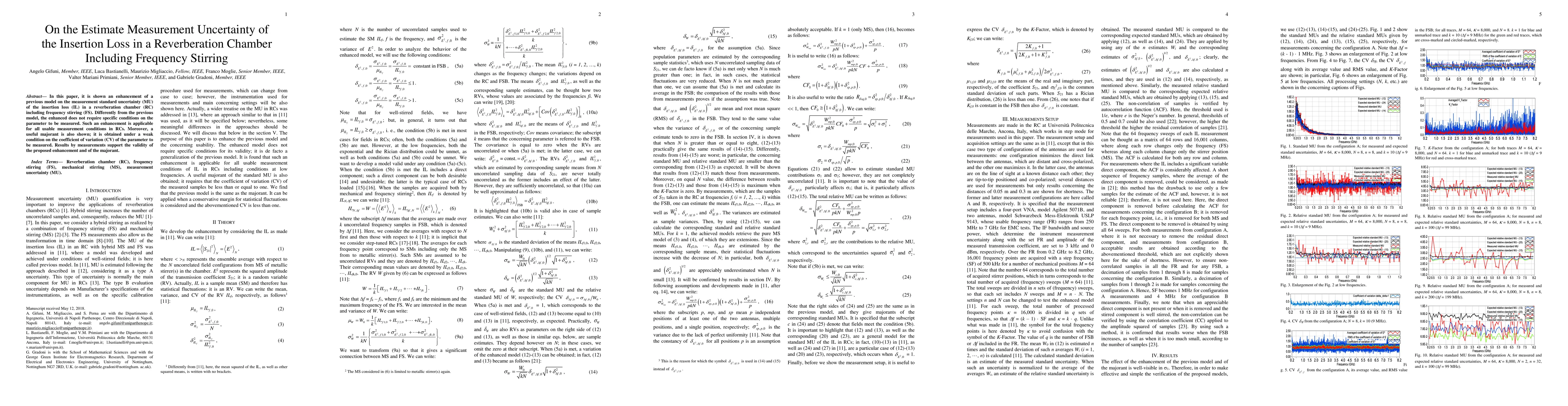 In this paper, it is shown an enhancement of a previous model on the measurement standard uncertainty (MU) of the insertion loss (IL) in a reverberation chamber (RC) including frequency stirring (FS). Differently from the previous model, the enhanced does not require specific conditions on the parameter to be measured. Such an enhancement is applicable for all usable measurement conditions in RCs. Moreover, a useful majorant is also shown; it is obtained under a weak condition on the coefficient of variation (CV) of the parameter to be measured. Results by measurements support the validity of the proposed enhancement and of the majorant.