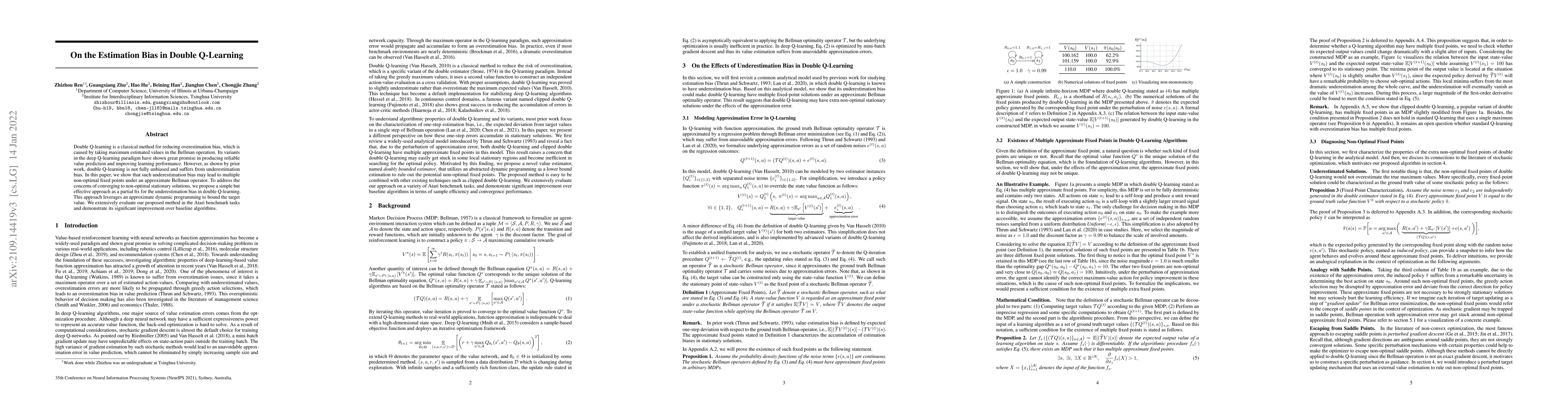 Double Q-learning suffers from underestimation bias, which can lead to non-optimal fixed points, but a proposed method leveraging approximate dynamic programming improves performance in Atari benchmark tasks.