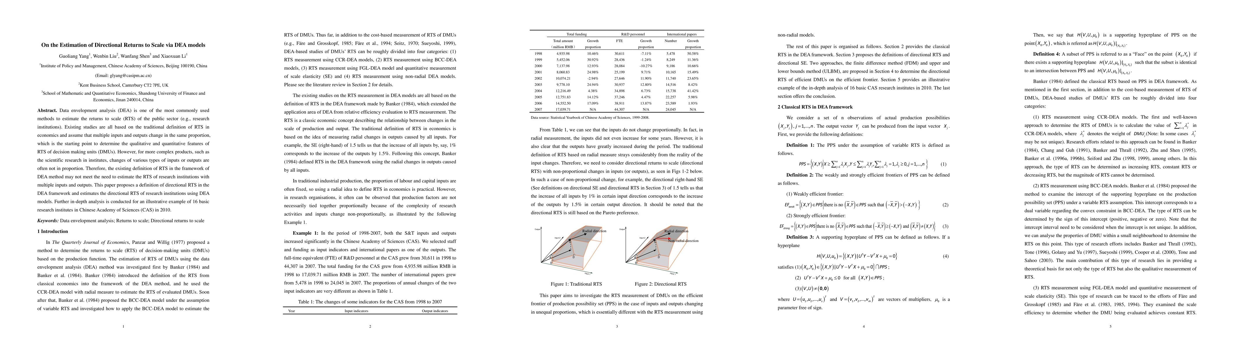 This paper proposes a new definition of directional returns to scale (RTS) within the DEA framework to better estimate RTS for research institutions with non-proportional changes in inputs and outputs. An illustrative example using 16 Chinese research institutes in 2010 demonstrates the application of this new directional RTS estimation method.
