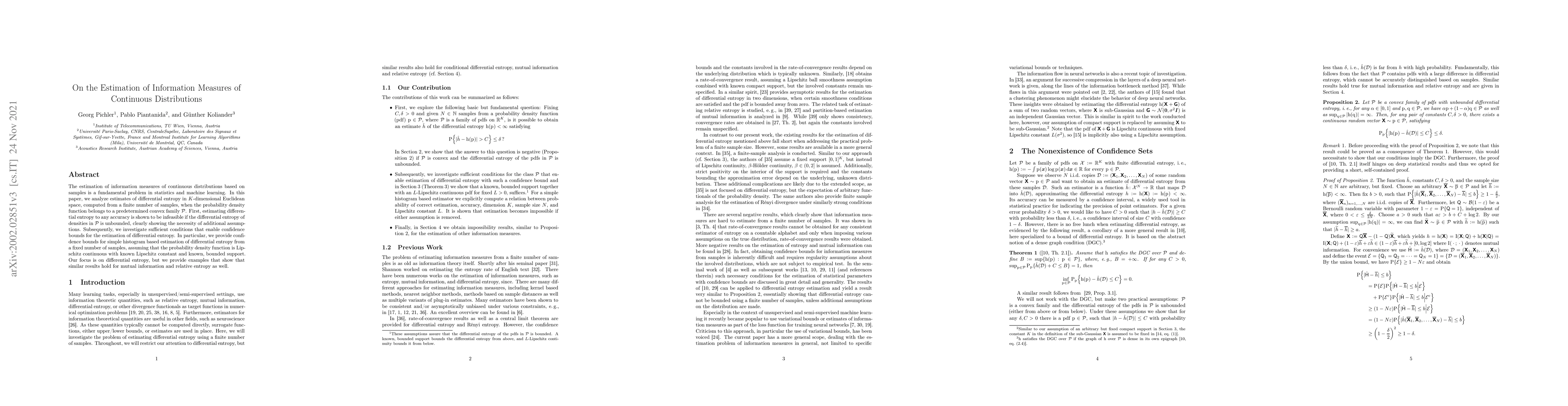 This paper explores the estimation of differential entropy for continuous distributions from finite samples, demonstrating that unbounded entropy makes accurate estimation infeasible. It then provides sufficient conditions and confidence bounds for entropy estimation under Lipschitz continuity and bounded support, extending similar results to mutual information and relative entropy.