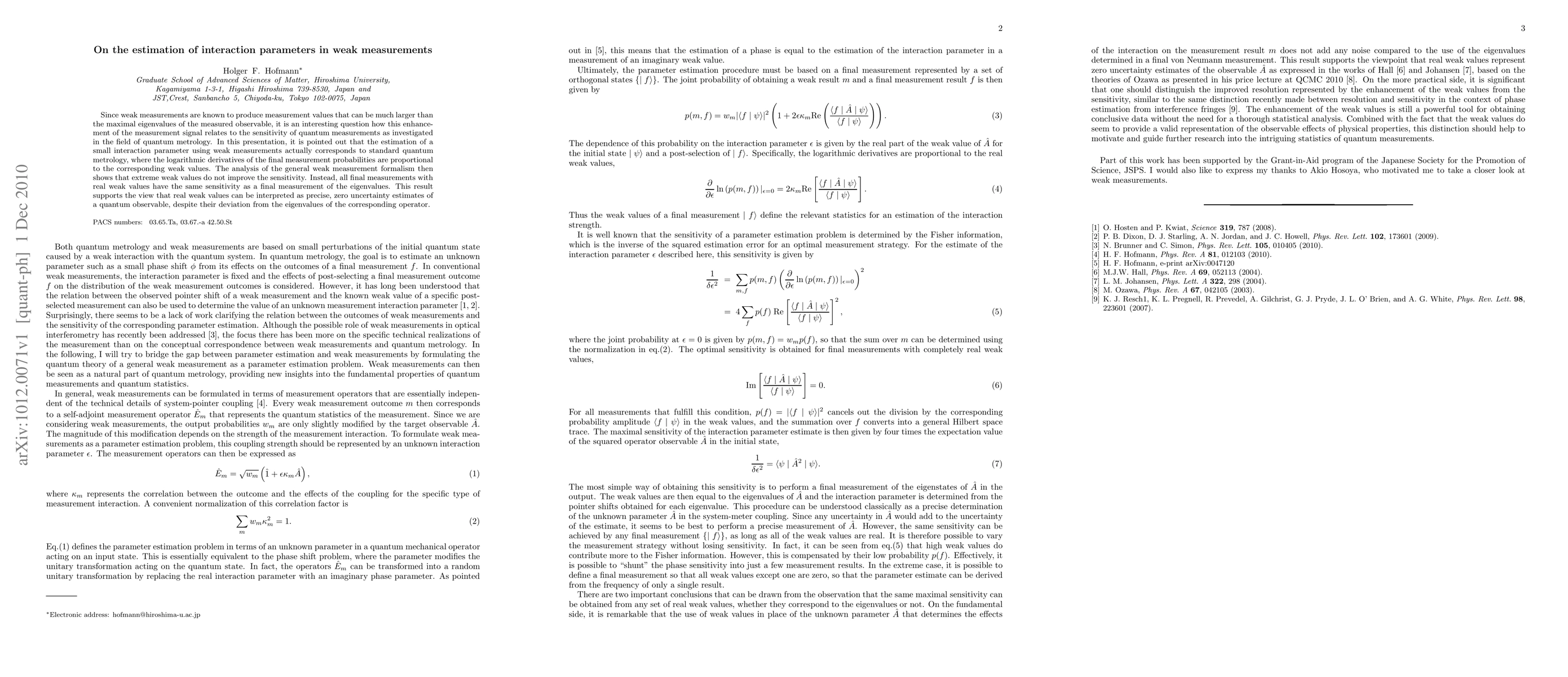 This paper investigates the estimation of interaction parameters in weak measurements, revealing that weak values do not enhance sensitivity beyond standard quantum metrology. It concludes that real weak values provide precise estimates of quantum observables without improving measurement sensitivity.