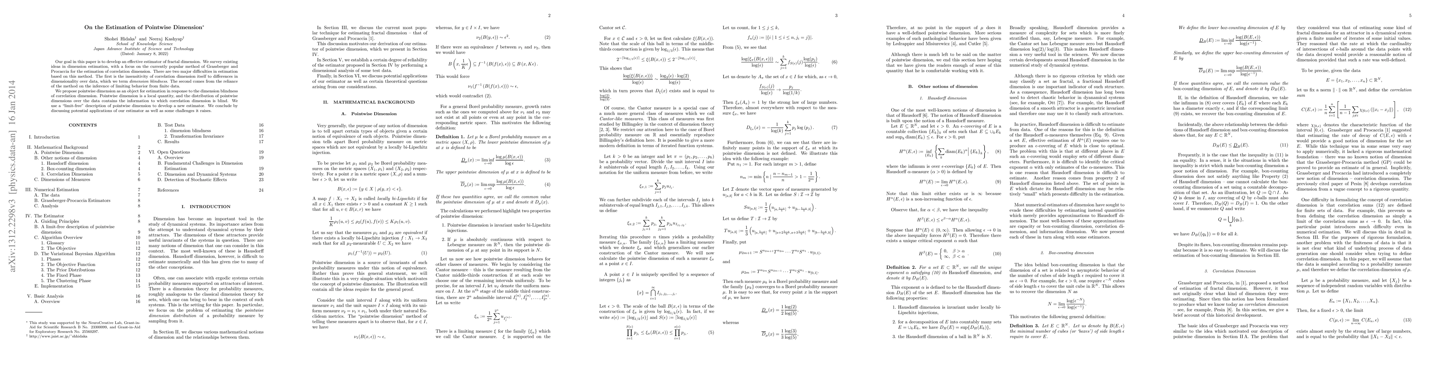 Our goal in this paper is to develop an effective estimator of fractal dimension. We survey existing ideas in dimension estimation, with a focus on the currently popular method of Grassberger and Procaccia for the estimation of correlation dimension. There are two major difficulties in estimation based on this method. The first is the insensitivity of correlation dimension itself to differences in dimensionality over data, which we term "dimension blindness". The second comes from the reliance of the method on the inference of limiting behavior from finite data. We propose pointwise dimension as an object for estimation in response to the dimension blindness of correlation dimension. Pointwise dimension is a local quantity, and the distribution of pointwise dimensions over the data contains the information to which correlation dimension is blind. We use a "limit-free" description of pointwise dimension to develop a new estimator. We conclude by discussing potential applications of our estimator as well as some challenges it raises.