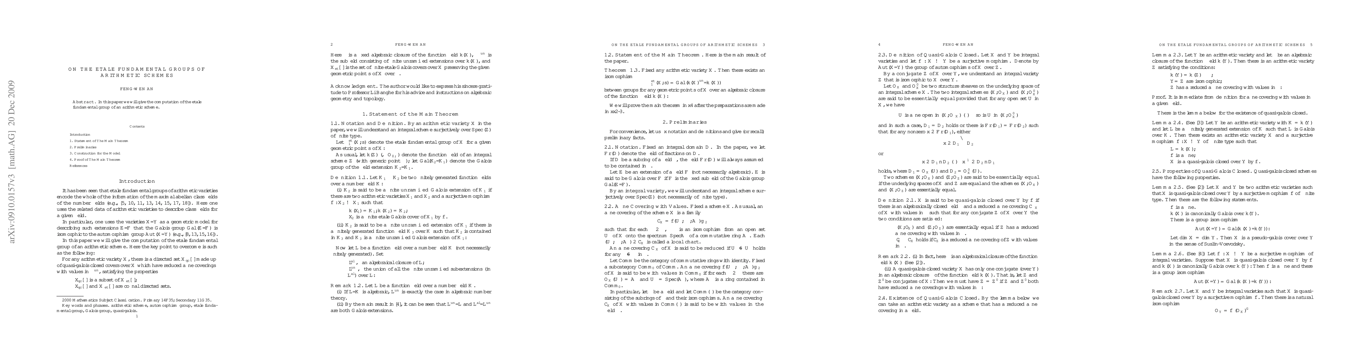 Summary: This paper computes the étale fundamental group of an arithmetic scheme, providing a detailed analysis of its structure and properties. The results contribute to the understanding of the topological properties of arithmetic schemes in algebraic geometry.