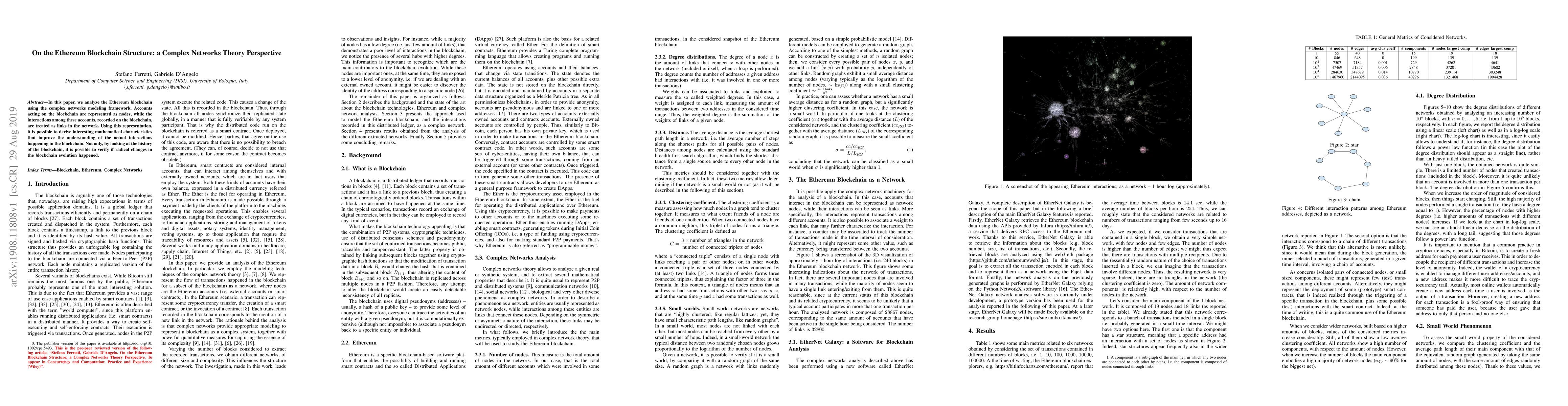 This paper analyzes the Ethereum blockchain using complex networks theory to understand interactions among accounts and derive mathematical characteristics. It helps improve understanding of blockchain evolution and verify radical changes over time.