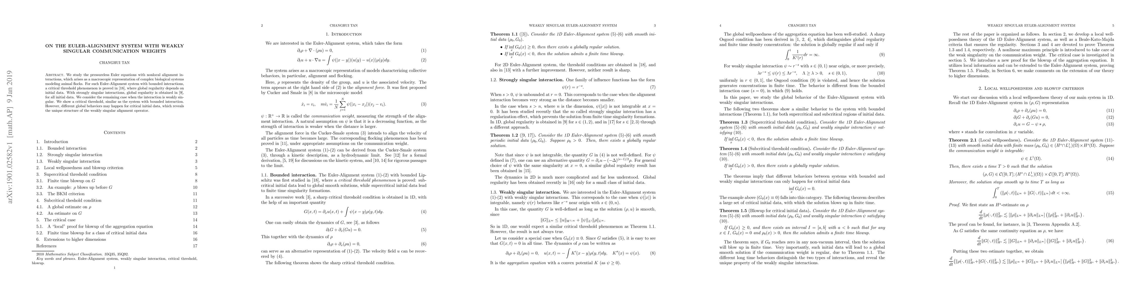 We study the pressureless Euler equations with nonlocal alignment interactions, which arises as a macroscopic representation of complex biological systems modeling animal flocks. For such Euler-Alignment system with bounded interactions, a critical threshold phenomenon is proved by Tadmor-Tan in 2014, where global regularity depends on initial data. With strongly singular interactions, global regularity is obtained by Do-Kiselev-Ryzhik-Tan in 2018, for all initial data. We consider the remaining case when the interaction is weakly singular. We show a critical threshold, similar to the system with bounded interaction. However, different global behaviors may happen for critical initial data, which reveals the unique structure of the weakly singular alignment operator.