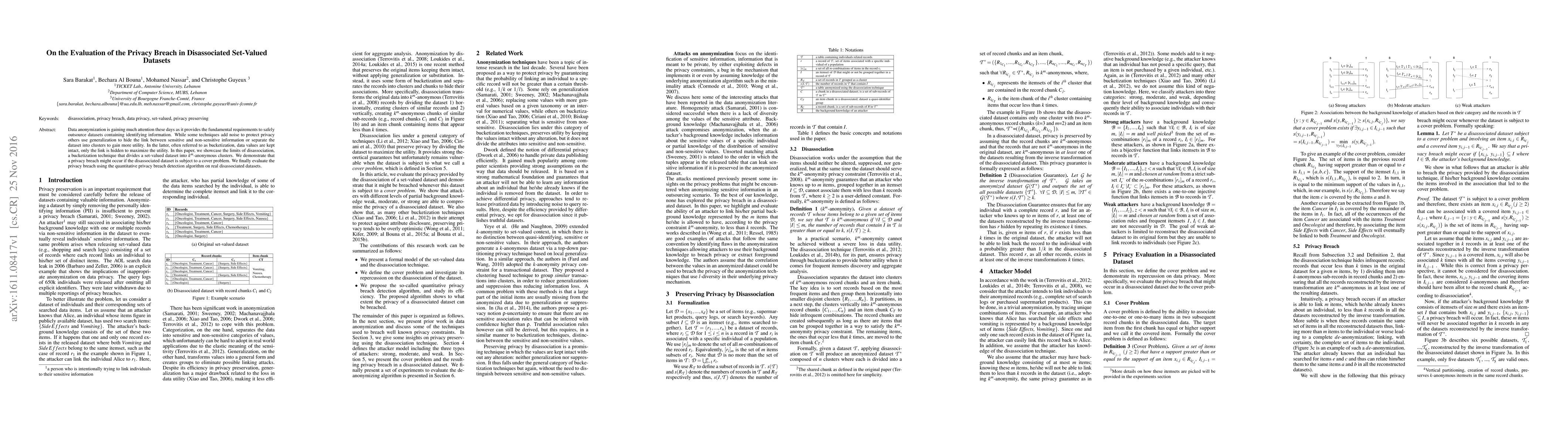 Researchers investigate the limits of disassociation, a bucketization technique used to anonymize datasets, finding that it may lead to privacy breaches if the dataset is subject to a cover problem. The study evaluates the privacy breach using a quantitative algorithm on real disassociated datasets.