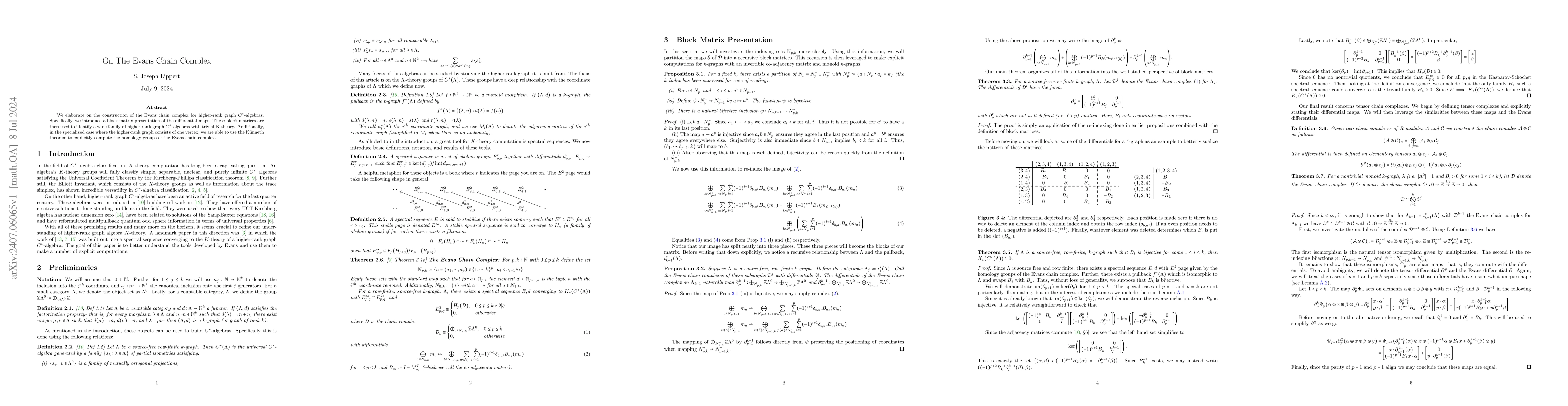 We elaborate on the construction of the Evans chain complex for higher-rank graph $C^*$-algebras. Specifically, we introduce a block matrix presentation of the differential maps. These block matrices are then used to identify a wide family of higher-rank graph $C^*$-algebras with trivial K-theory. Additionally, in the specialized case where the higher-rank graph consists of one vertex, we are able to use the K\"unneth theorem to explicitly compute the homology groups of the Evans chain complex.