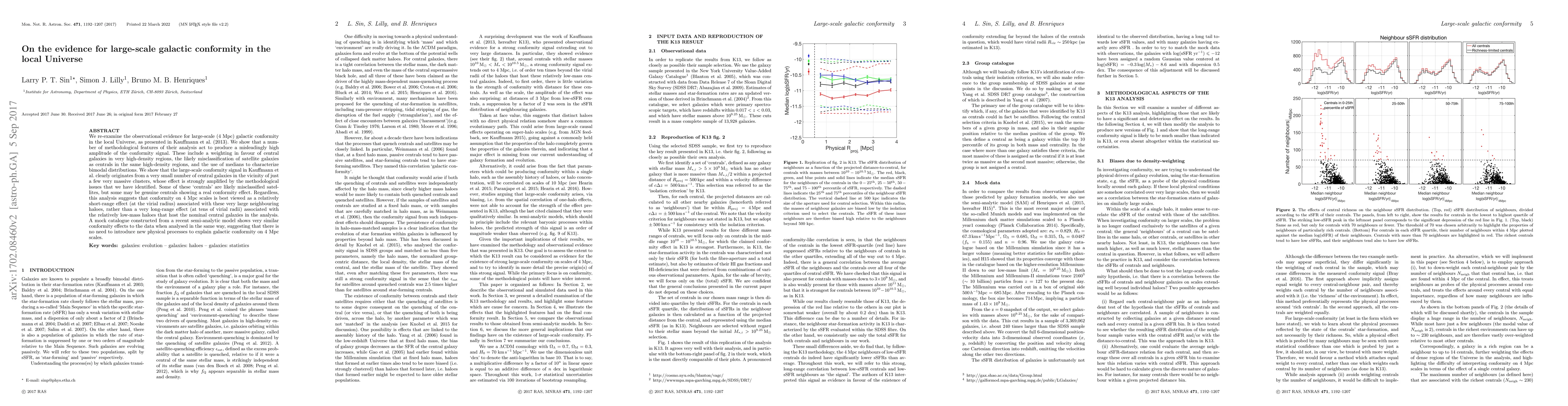 This paper re-examines evidence for large-scale galactic conformity in the local Universe, finding that methodological issues in previous analyses inflate the conformity signal. It concludes that conformity is a short-range effect near massive clusters rather than a widespread long-range phenomenon.