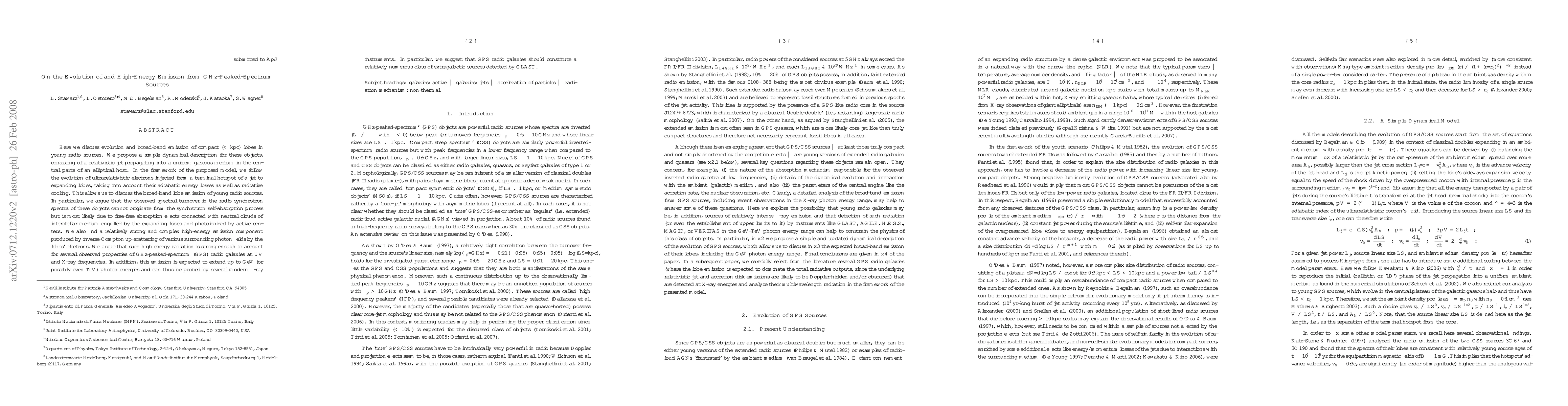Here we discuss evolution and broad-band emission of compact (< kpc) lobes in young radio sources. We propose a simple dynamical description for these objects, consisting of a relativistic jet propagating into a uniform gaseous medium in the central parts of an elliptical host. In the framework of the proposed model, we follow the evolution of ultrarelativistic electrons injected from a terminal hotspot of a jet to expanding lobes, taking into account their adiabatic energy losses as well as radiative cooling. This allows us to discuss the broad-band lobe emission of young radio sources. In particular, we argue that the observed spectral turnover in the radio synchrotron spectra of these objects cannot originate from the synchrotron self-absorption process but is most likely due to free-free absorption effects connected with neutral clouds of interstellar medium engulfed by the expanding lobes and photoionized by active centers. We also find a relatively strong and complex high-energy emission component produced by inverse-Compton up-scattering of various surrounding photon fields by the lobes' electrons. We argue that such high energy radiation is strong enough to account for several observed properties of GHz-peaked-spectrum (GPS) radio galaxies at UV and X-ray frequencies. In addition, this emission is expected to extend up to GeV (or possibly even TeV) photon energies and can thus be probed by several modern gamma-ray instruments. In particular, we suggest that GPS radio galaxies should constitute a relatively numerous class of extragalactic sources detected by GLAST.