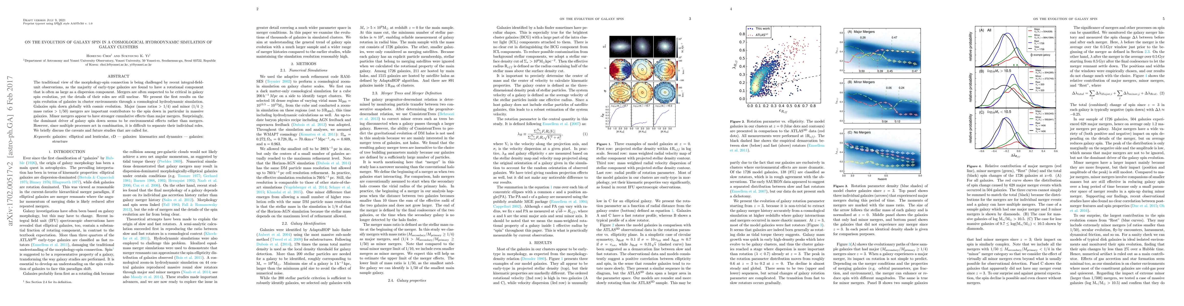 The traditional view of the morphology-spin connection is being challenged by recent integral-field-unit observations, as the majority of early-type galaxies are found to have a rotational component that is often as large as a dispersion component. Mergers are often suspected to be critical in galaxy spin evolution, yet the details of their roles are still unclear. We present the first results on the spin evolution of galaxies in cluster environments through a cosmological hydrodynamic simulation. Galaxies spin down globally with cosmic evolution. Major (mass ratios > 1/4) and minor (1/4 $\geq$ mass ratios > 1/50) mergers are important contributors to the spin down in particular in massive galaxies. Minor mergers appear to have stronger cumulative effects than major mergers. Surprisingly, the dominant driver of galaxy spin down seems to be environmental effects rather than mergers. However, since multiple processes act in combination, it is difficult to separate their individual roles. We briefly discuss the caveats and future studies that are called for.