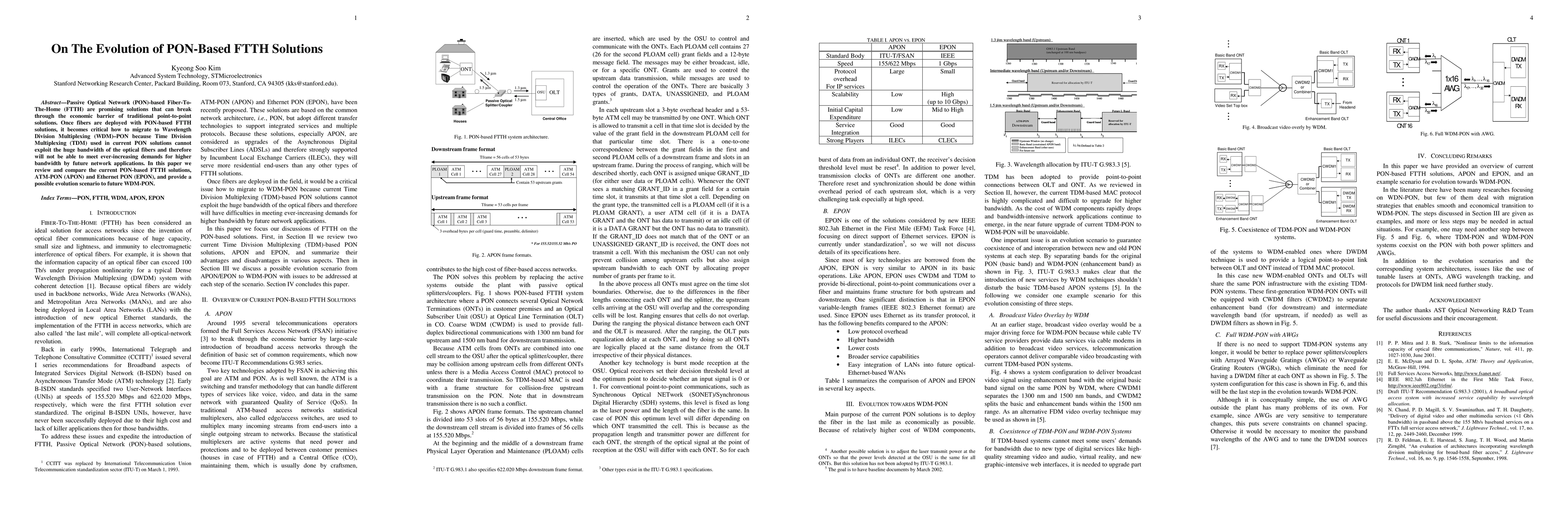 This paper reviews current PON-based FTTH solutions, specifically ATM-PON and Ethernet PON, and discusses the transition to WDM-PON to meet future bandwidth demands, highlighting the limitations of current TDM-based solutions. It proposes a potential evolution pathway to WDM-PON.