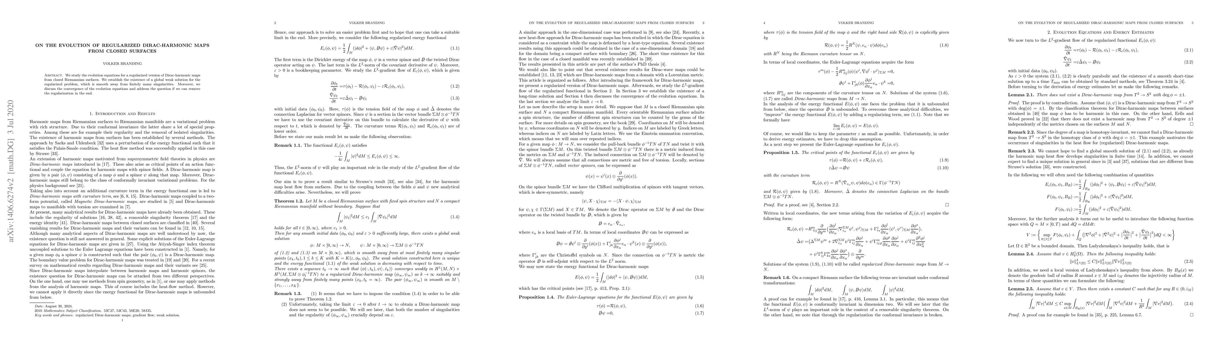 This paper investigates the evolution of regularized Dirac-harmonic maps from closed Riemannian surfaces, proving the existence of a global weak solution that is smooth except at finitely many singularities. It also explores the convergence of the regularized equations and considers the possibility of removing the regularization.