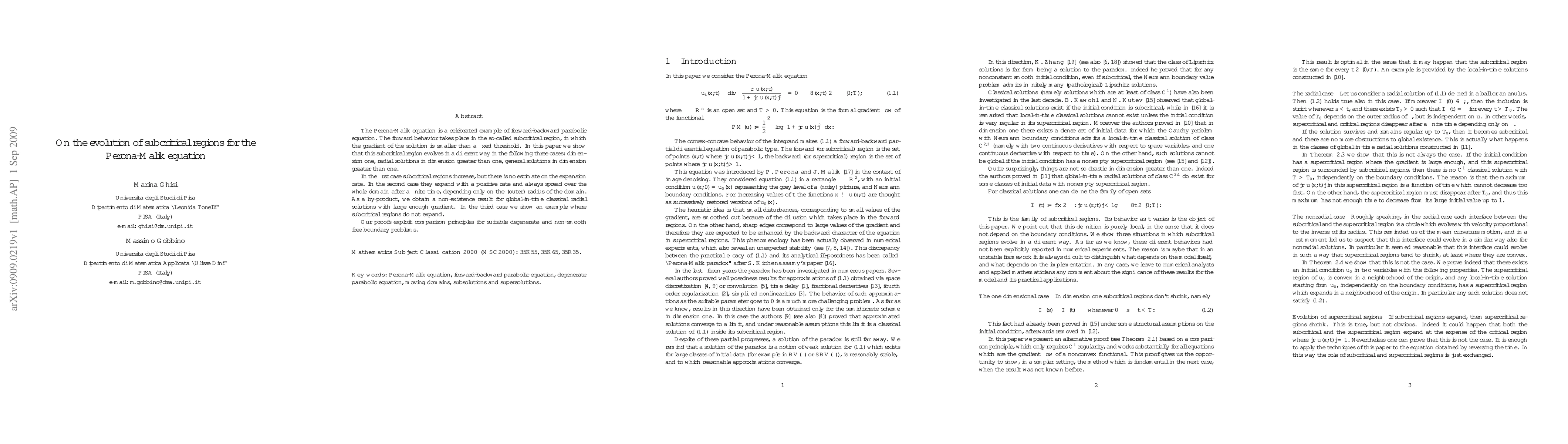 The Perona-Malik equation is a celebrated example of forward-backward parabolic equation. The forward behavior takes place in the so-called subcritical region, in which the gradient of the solution is smaller than a fixed threshold. In this paper we show that this subcritical region evolves in a different way in the following three cases: dimension one, radial solutions in dimension greater than one, general solutions in dimension greater than one. In the first case subcritical regions increase, but there is no estimate on the expansion rate. In the second case they expand with a positive rate and always spread over the whole domain after a finite time, depending only on the (outer) radius of the domain. As a by-product, we obtain a non-existence result for global-in-time classical radial solutions with large enough gradient. In the third case we show an example where subcritical regions do not expand. Our proofs exploit comparison principles for suitable degenerate and non-smooth free boundary problems.
