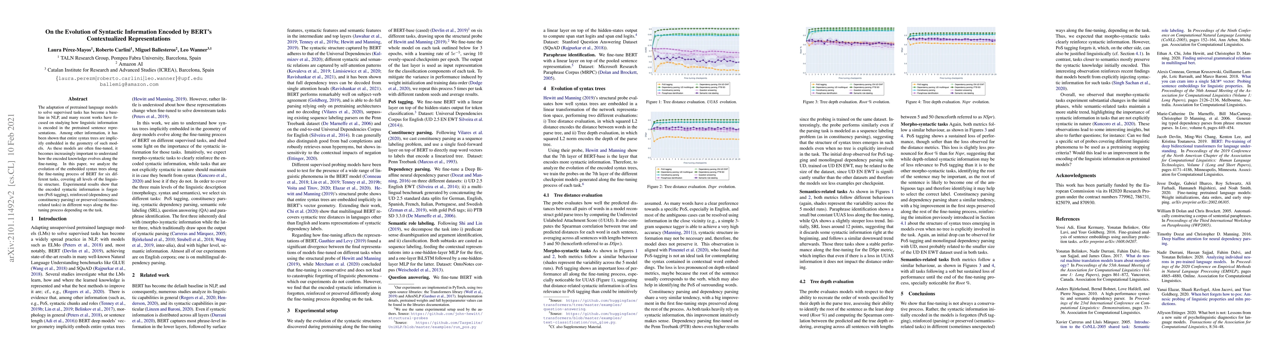 This paper examines how syntactic information in BERT's contextualized representations changes during fine-tuning for various NLP tasks. Results indicate that the encoded syntactic details either diminish, strengthen, or remain stable, depending on the specific task, revealing task-dependent evolution of linguistic knowledge within BERT.