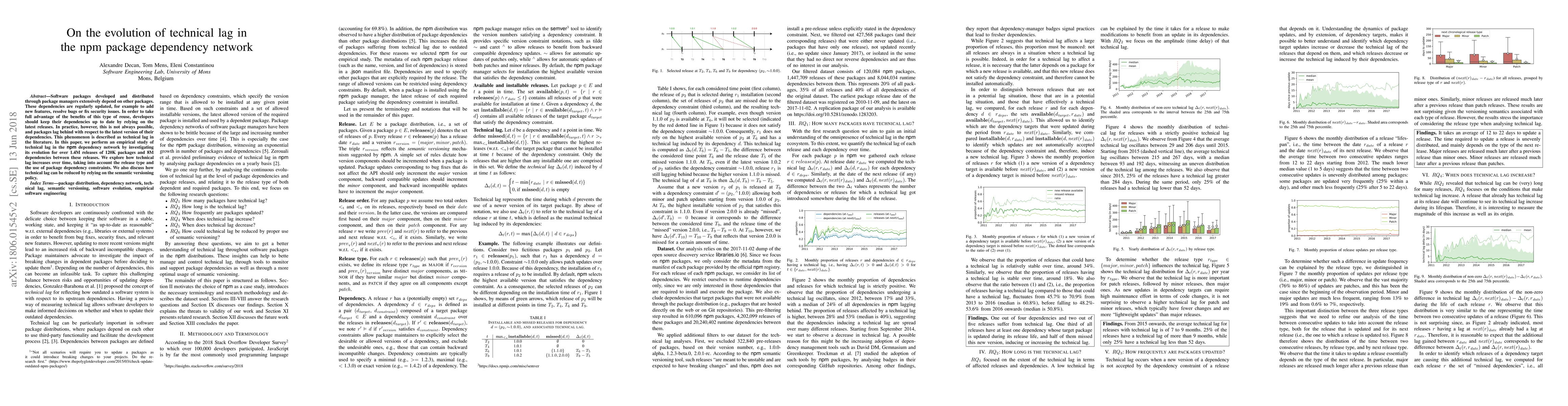 The paper introduces an empirical analysis of technical lag in npm package dependencies, providing insights into its causes, evolution, and reduction strategies.
