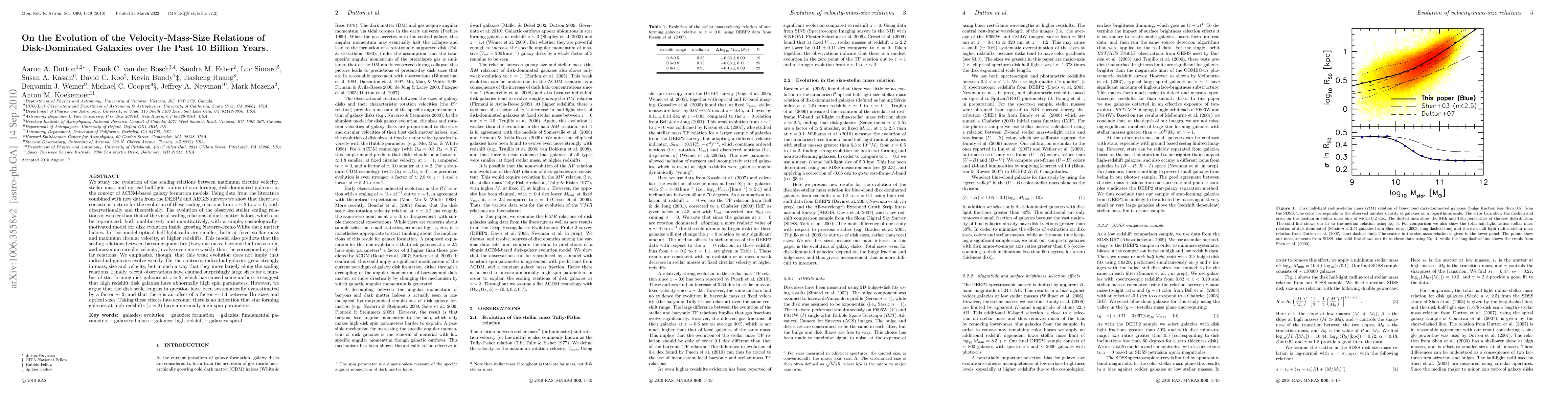 Research shows that the scaling relations between galaxy velocity, mass, and size have evolved consistently from z=2 to z=0, with baryonic quantities evolving more weakly than stellar properties. High-redshift galaxies do not have abnormally high spin parameters, despite initial claims of larger sizes.