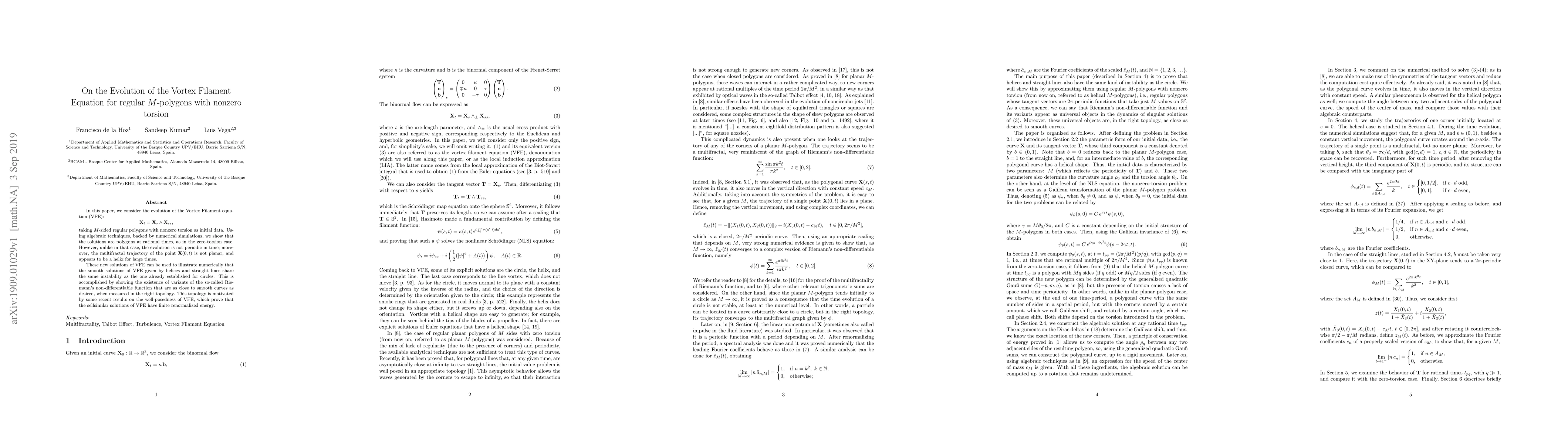 This paper explores the evolution of the Vortex Filament Equation (VFE) for regular $M$-polygons with nonzero torsion, demonstrating that solutions remain polygonal at rational times but differ from the zero-torsion case by evolving non-periodically and forming helical trajectories. The study also reveals shared instabilities between smooth solutions and polygonal solutions, supported by numerical simulations.
