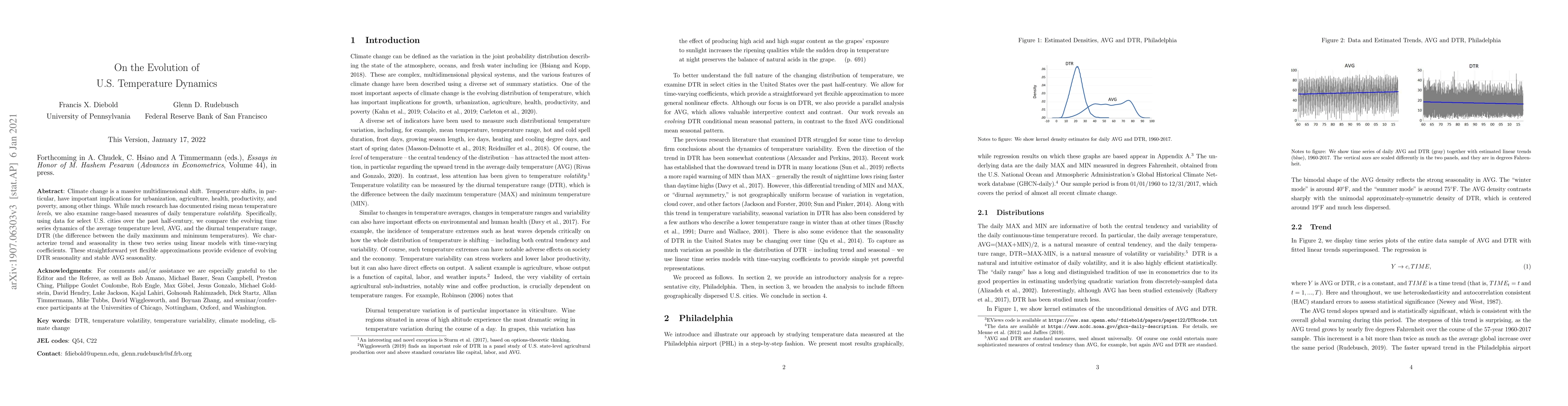 Climate change is a massive multidimensional shift. Temperature shifts, in particular, have important implications for urbanization, agriculture, health, productivity, and poverty, among other things. While much research has documented rising mean temperature \emph{levels}, we also examine range-based measures of daily temperature \emph{volatility}. Specifically, using data for select U.S. cities over the past half-century, we compare the evolving time series dynamics of the average temperature level, AVG, and the diurnal temperature range, DTR (the difference between the daily maximum and minimum temperatures). We characterize trend and seasonality in these two series using linear models with time-varying coefficients. These straightforward yet flexible approximations provide evidence of evolving DTR seasonality and stable AVG seasonality.