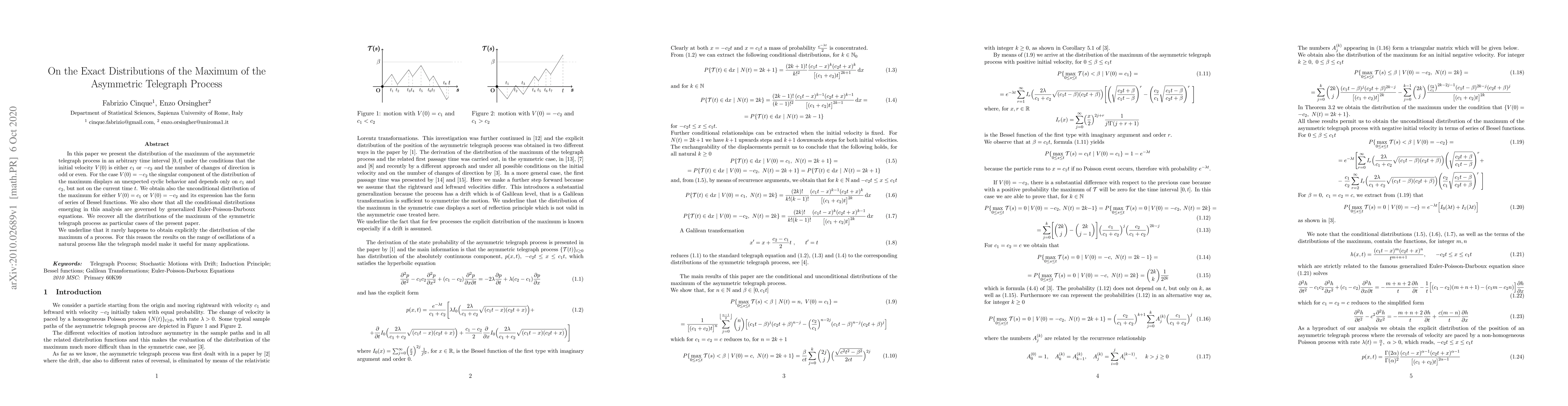 In this paper we present the distribution of the maximum of the asymmetric telegraph process in an arbitrary time interval $[0,t]$ under the conditions that the initial velocity $V(0)$ is either $c_1$ or $-c_2$ and the number of changes of direction is odd or even. For the case $V(0) = -c_2$ the singular component of the distribution of the maximum displays an unexpected cyclic behavior and depends only on $c_1$ and $c_2$, but not on the current time $t$. We obtain also the unconditional distribution of the maximum for either $V(0) = c_1$ or $V(0) = -c_2$ and its expression has the form of series of Bessel functions. We also show that all the conditional distributions emerging in this analysis are governed by generalized Euler-Poisson-Darboux equations. We recover all the distributions of the maximum of the symmetric telegraph process as particular cases of the present paper. We underline that it rarely happens to obtain explicitly the distribution of the maximum of a process. For this reason the results on the range of oscillations of a natural process like the telegraph model make it useful for many applications.