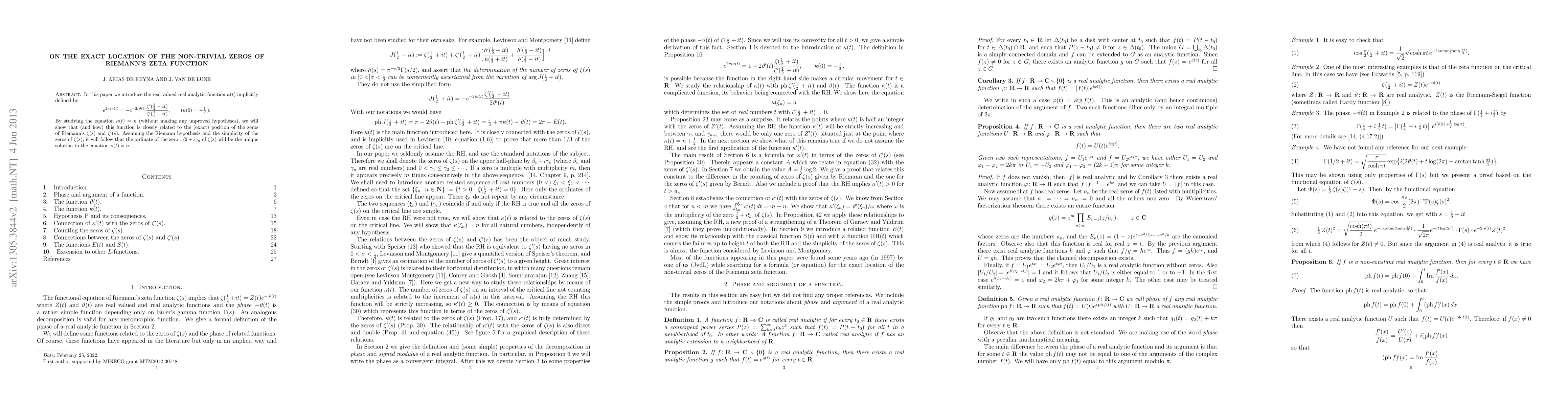 This paper introduces a real analytic function kappa(t) to explore the exact location of non-trivial zeros of the Riemann zeta function. It shows that kappa(t) = n relates closely to the ordinate of the zeros of zeta(s), proving the ordinate of the zero at 1/2 + iγ_n without unproven assumptions, assuming the Riemann hypothesis and zero simplicity.