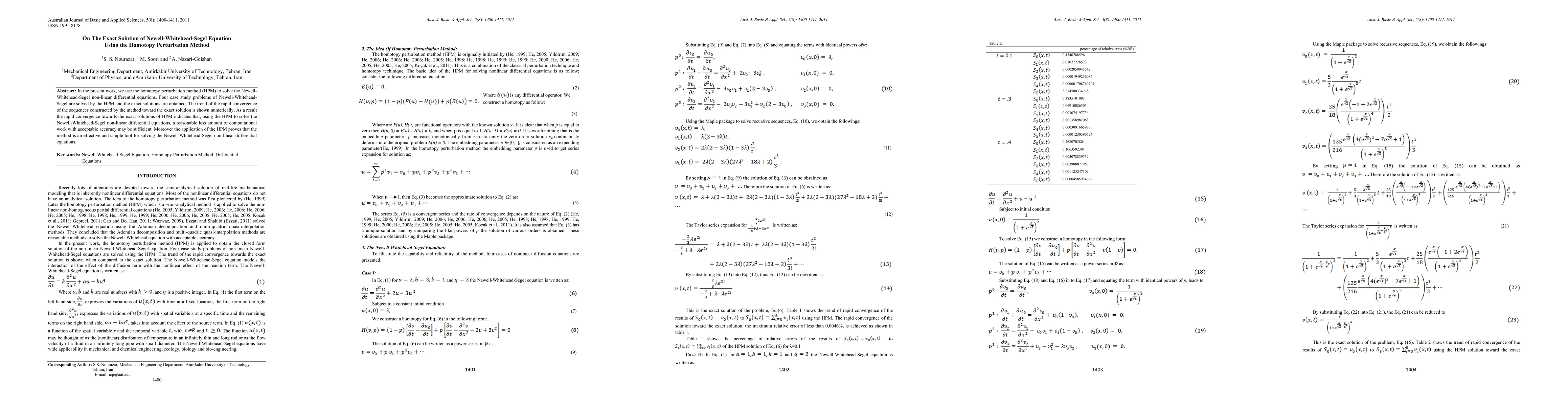 This paper employs the homotopy perturbation method (HPM) to solve the Newell-Whitehead-Segel non-linear differential equations, obtaining exact solutions for four case studies. The HPM demonstrates rapid convergence and computational efficiency, proving its effectiveness for solving such complex equations.