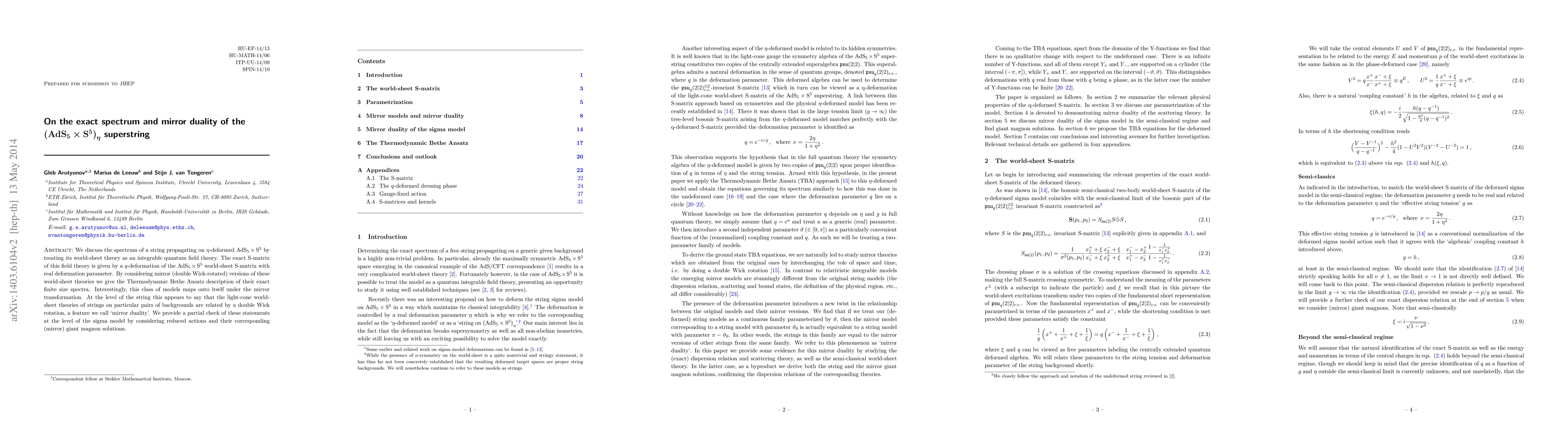 We discuss the spectrum of a string propagating on eta-deformed AdS_5 x S^5 by treating its world-sheet theory as an integrable quantum field theory. The exact S-matrix of this field theory is given by a q-deformation of the AdS_5 x S^5 world-sheet S-matrix with real deformation parameter. By considering mirror (double Wick-rotated) versions of these world-sheet theories we give the Thermodynamic Bethe Ansatz description of their exact finite size spectra. Interestingly, this class of models maps onto itself under the mirror transformation. At the level of the string this appears to say that the light-cone worldsheet theories of strings on particular pairs of backgrounds are related by a double Wick rotation, a feature we call 'mirror duality'. We provide a partial check of these statements at the level of the sigma model by considering reduced actions and their corresponding (mirror) giant magnon solutions.