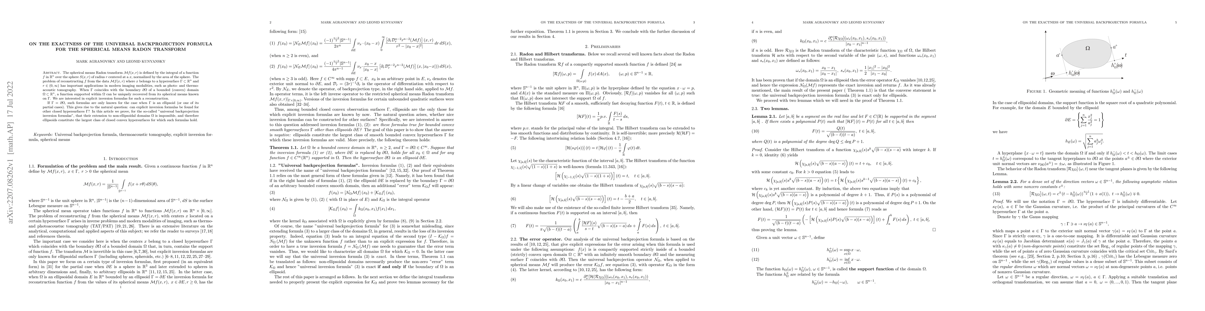 This paper proves that the universal backprojection inversion formulas for the spherical means Radon transform cannot be extended beyond ellipsoidal domains, establishing that ellipsoids represent the largest class of closed convex hypersurfaces for which such explicit inversion formulas exist. This finding has implications for the reconstruction of functions in imaging modalities like photo- and thermo-acoustic tomography.