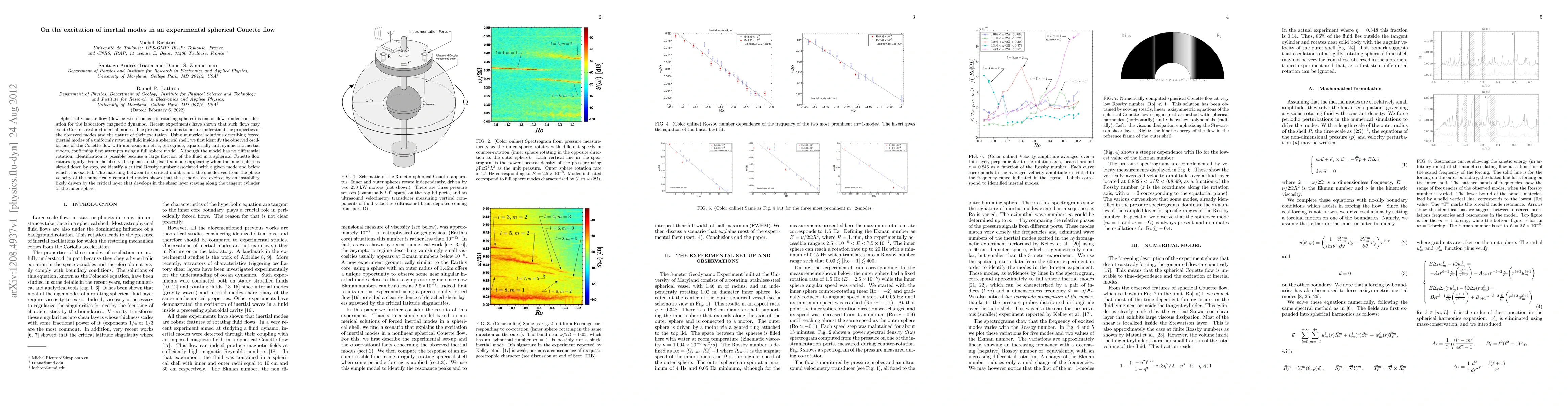 This paper investigates the excitation of inertial modes in spherical Couette flow, identifying non-axisymmetric, retrograde, equatorially anti-symmetric inertial modes. The study finds a critical Rossby number below which these modes are excited, suggesting excitation is driven by an instability in the shear layer along the tangent cylinder of the inner sphere.