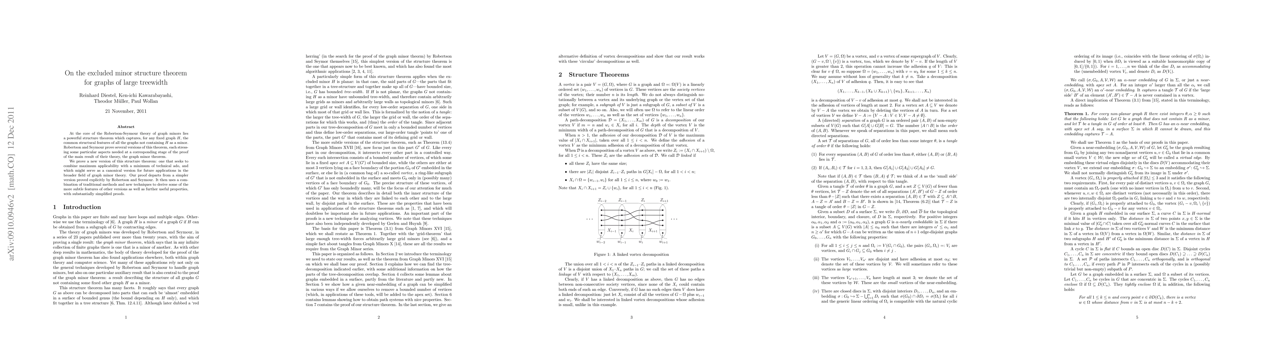 This paper presents a new version of the excluded minor structure theorem for graphs of large treewidth, aiming for maximum applicability and simplified proofs. It combines traditional methods with new techniques to achieve a canonical form for future applications in graph minor theory.