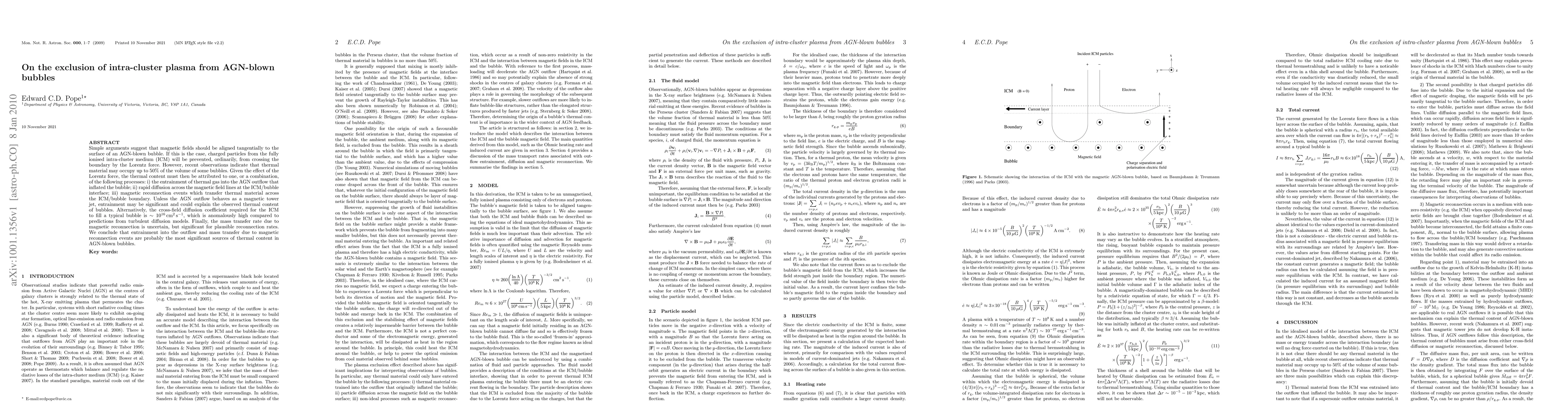 Simple arguments suggest that magnetic fields should be aligned tangentially to the surface of an AGN-blown bubble. If this is the case, charged particles from the fully ionised intra-cluster medium (ICM) will be prevented, ordinarily, from crossing the boundary by the Lorentz force. However, recent observations indicate that thermal material may occupy up to 50% of the volume of some bubbles. Given the effect of the Lorentz force, the thermal content must then be attributed to one, or a combination, of the following processes: i) the entrainment of thermal gas into the AGN outflow that inflated the bubble; ii) rapid diffusion across the magnetic field lines at the ICM/bubble interface; iii) magnetic reconnection events which transfer thermal material across the ICM/bubble boundary. Unless the AGN outflow behaves as a magnetic tower jet, entrainment may be significant and could explain the observed thermal content of bubbles. Alternatively, the cross-field diffusion coefficient required for the ICM to fill a typical bubble is roughly 10^16 cm^2 s^-1, which is anomalously high compared to predictions from turbulent diffusion models. Finally, the mass transfer rate due to magnetic reconnection is uncertain, but significant for plausible reconnection rates. We conclude that entrainment into the outflow and mass transfer due to magnetic reconnection events are probably the most significant sources of thermal content in AGN-blown bubbles.