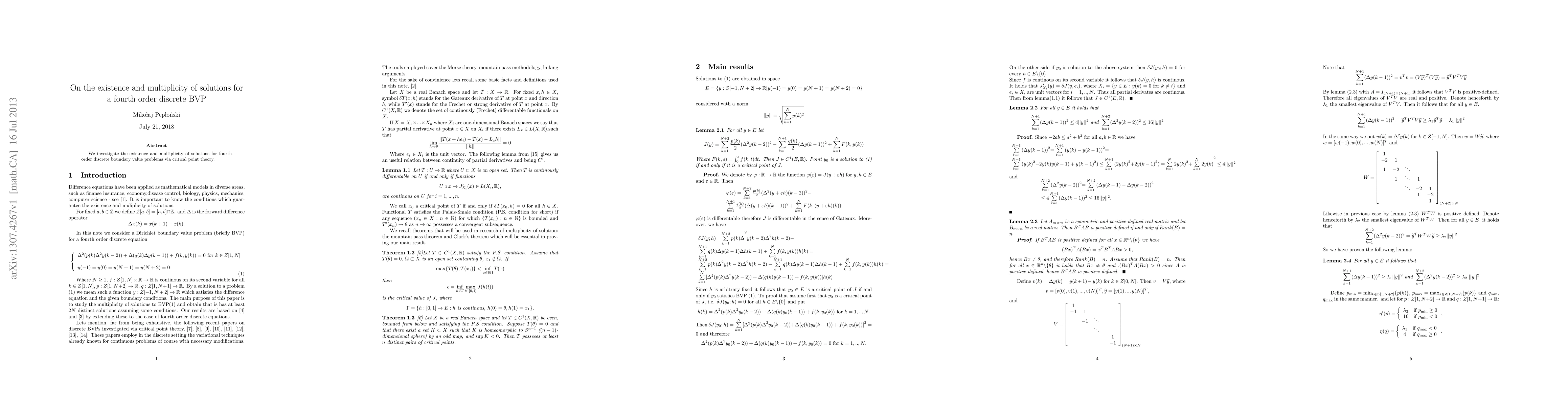 Summary: This paper explores the existence and multiplicity of solutions for fourth order discrete boundary value problems using critical point theory, providing insights into the underlying mathematical structure.