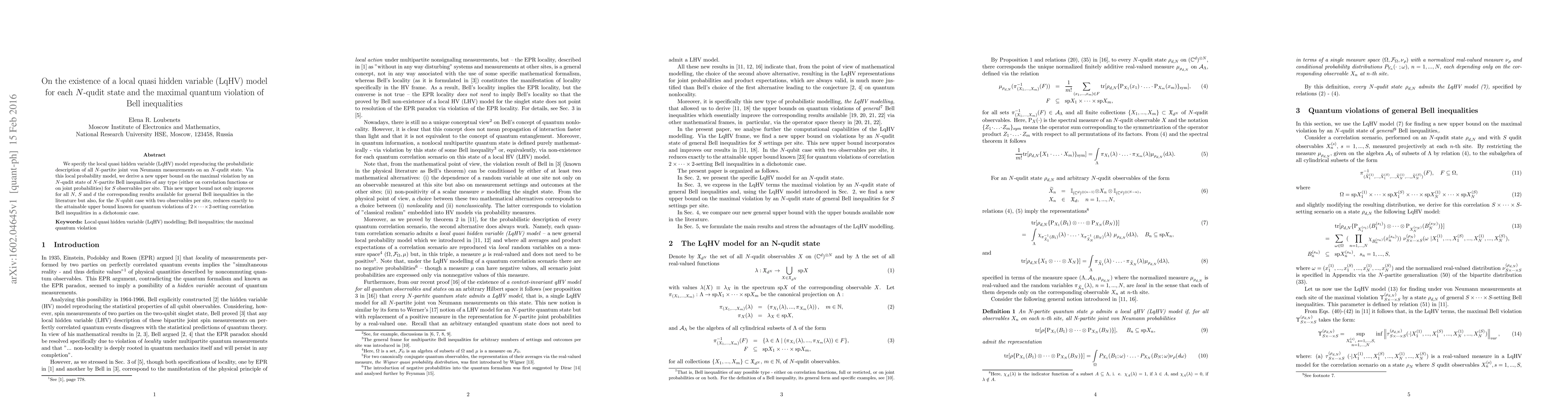 This paper introduces a new model that reproduces N-partite joint measurements and sets an upper bound for maximal quantum violation of Bell inequalities, improving existing results for general cases and matching known bounds for specific scenarios.