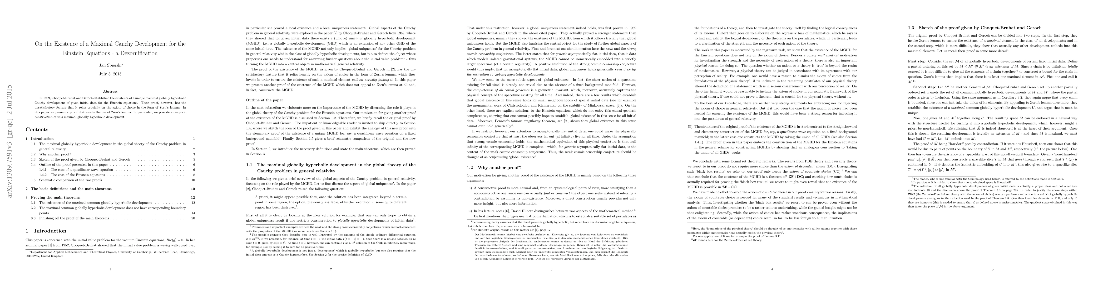 In 1969, Choquet-Bruhat and Geroch established the existence of a unique maximal globally hyperbolic Cauchy development of given initial data for the Einstein equations. Their proof, however, has the unsatisfactory feature that it relies crucially on the axiom of choice in the form of Zorn's lemma. In this paper we present a proof that avoids the use of Zorn's lemma. In particular, we provide an explicit construction of this maximal globally hyperbolic development.