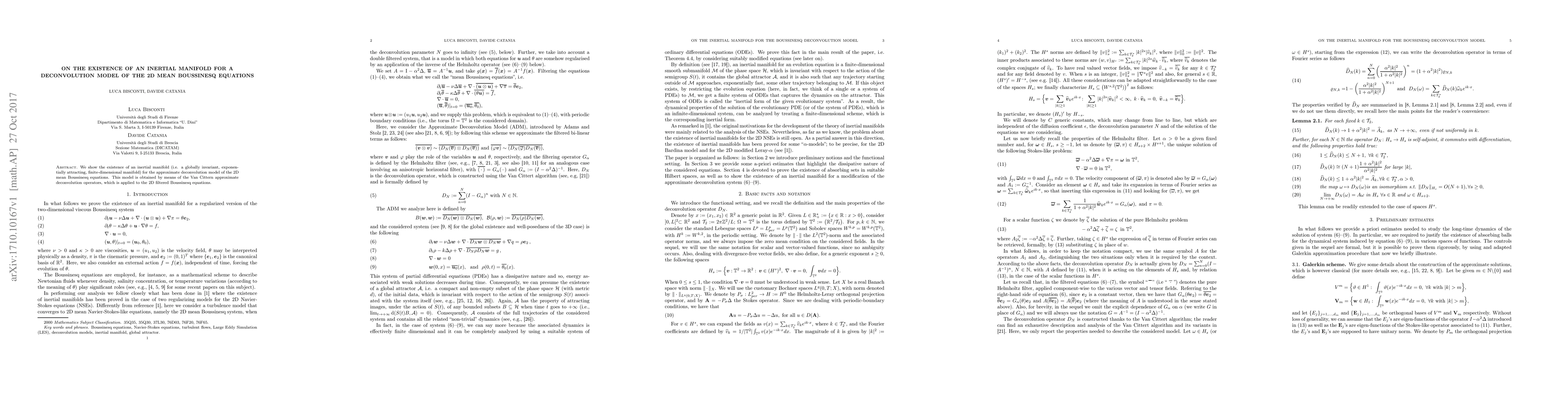 We show the existence of an inertial manifold (i.e. a globally invariant, exponentially attracting, finite-dimensional manifold) for the approximate deconvolution model of the 2D mean Boussinesq equations. This model is obtained by means of the Van Cittern approximate deconvolution operators, which is applied to the 2D filtered Boussinesq equations.