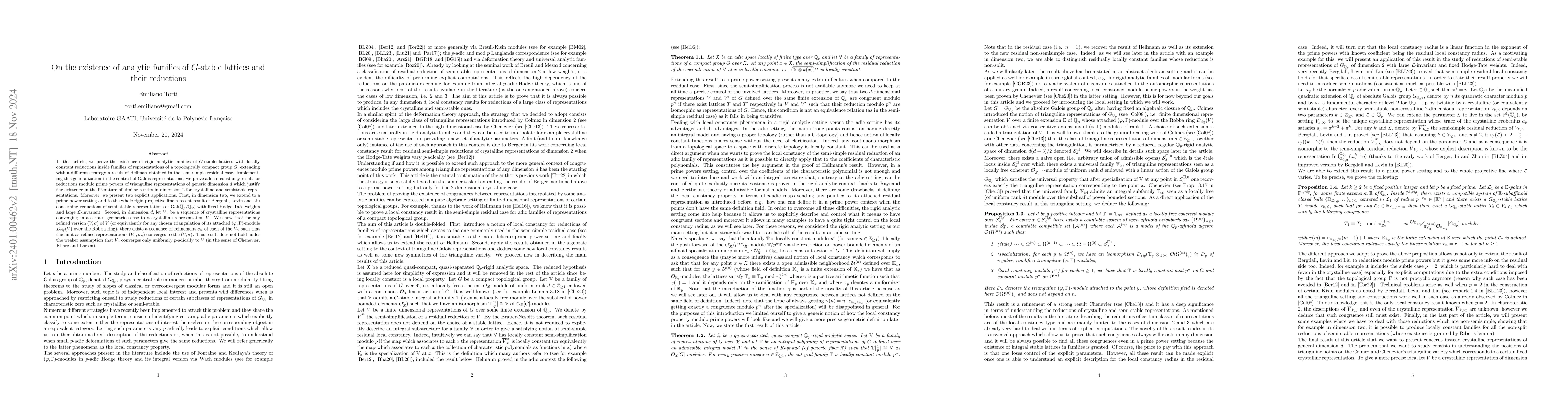 In this article, we prove the existence of rigid analytic families of $G$-stable lattices with locally constant reductions inside families of representations of a topologically compact group $G$, extending a result of Hellman obtained in the semi-simple residual case. Implementing this generalization in the context of Galois representations, we prove a local constancy result for reductions modulo prime powers of trianguline representations of generic dimension $d$. Moreover, we present two explicit applications. First, in dimension two, we extend to a prime power setting and to the whole rigid projective line a recent result of Bergdall, Levin and Liu concerning reductions of semi-stable representations of $\text{Gal}(\overline{\mathbb{Q}}_p / \mathbb{Q}_p)$ with fixed Hodge-Tate weights and large $\mathcal{L}$-invariant. Second, in dimension $d$, let $V_n$ be a sequence of crystalline representations converging in a certain geometric sense to a crystalline representation $V$. We show that for any refined version $(V, \sigma)$ of $V$ (or equivalently for any chosen triangulation of its attached $(\varphi, \Gamma)$-module $D_{\text{rig}} (V)$ over the Robba ring), there exists a sequence of refinement $\sigma_n$ of each of the $V_n$ such that the limit as refined representations $(V_n , \sigma_n )$ converges to the $(V, \sigma)$. This result does not hold under the weaker assumption that $V_n$ converges only uniformly $p$-adically to $V$ (in the sense of Chenevier, Khare and Larsen).