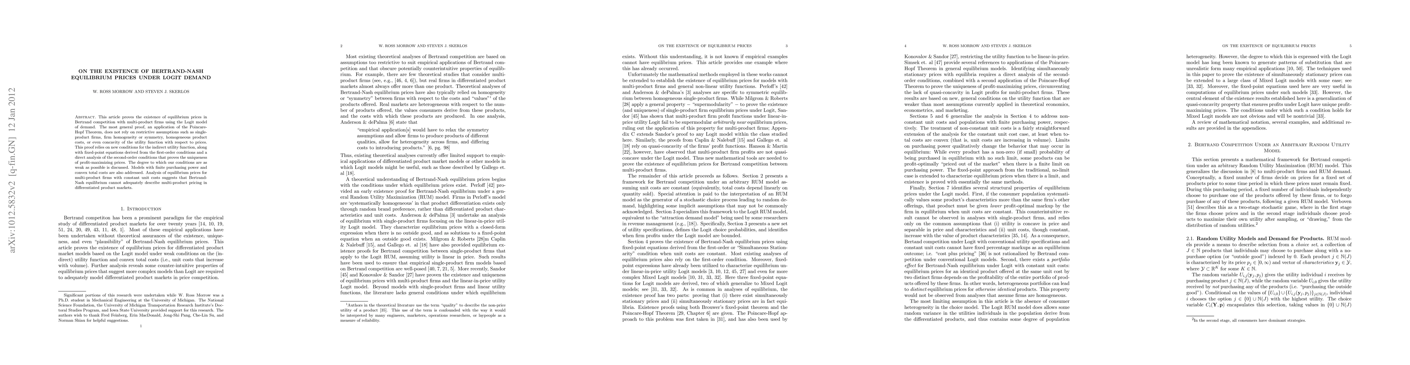 This paper proves that Bertrand-Nash equilibrium prices exist for multi-product firms under the Logit demand model without assuming restrictive characteristics or functions. It also shows that the Logit model cannot accurately describe multi-product pricing.