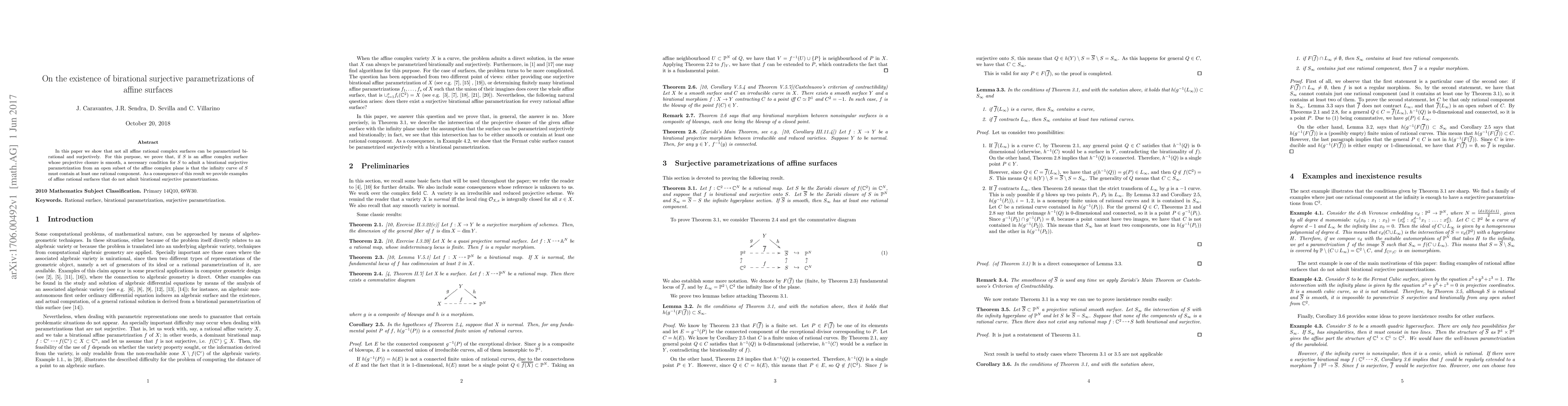 Researchers found that birational surjective parametrizations of affine surfaces do not exist for all cases, specifically when the projective closure is smooth. A necessary condition is that the infinity curve must contain a rational component.