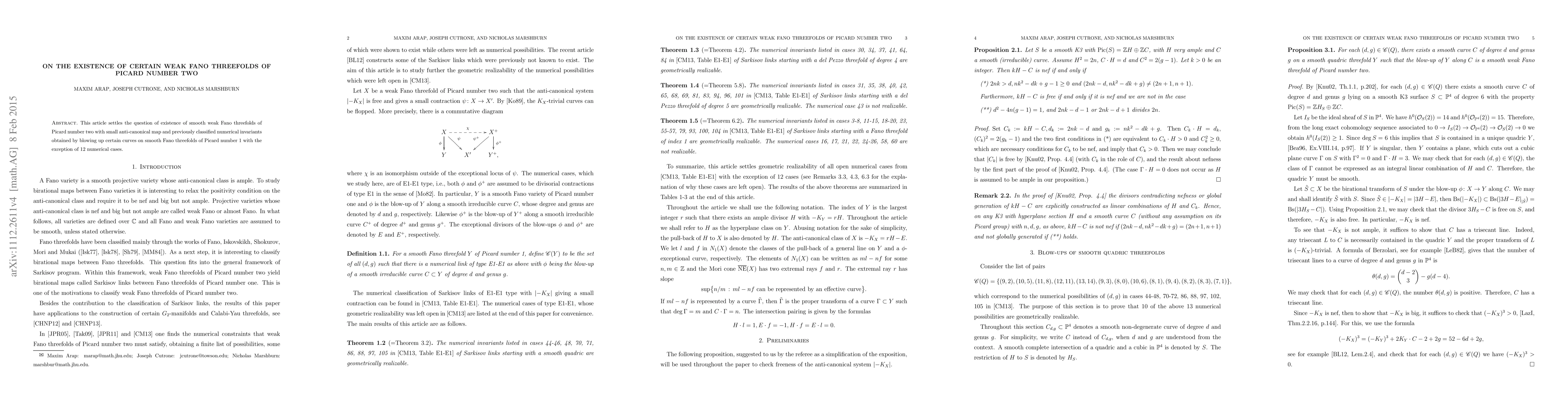 This paper confirms the existence of smooth weak Fano threefolds with Picard number two and a small anti-canonical map, classifying these cases except for 12 previously unclassified numerical instances obtained by blowing up specific curves on Fano threefolds of Picard number 1.
